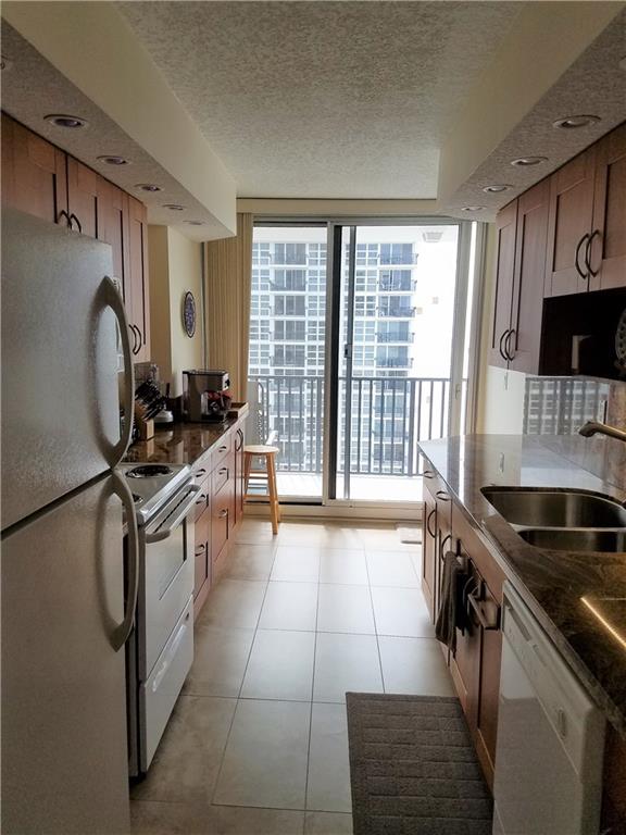 This two bedroom, two bath unit is Totally modern & gorgeous, with amazing views of ocean & Intracoastal/city from two private balconies, one facing SE & the other facing West. Watch the sunrise & sunset from this beautiful unit. Remodeled kitchen with new refrigerator, granite counter tops, stainless steel appliances. Brand new water heater. Completely & beautifully tiled throughout. Second bedroom is set up as a den with work area, desk and sleeper sofa with walk in closet. Large Master bedroom has king size bed & large walk in closet. Garage parking. Building amenities include two pools, tennis court, exercise rooms, sauna, game room, 24/7 security desk... all just steps away from amazing wide white sand beach. Walk to newly renovated pier, beachfront restaurants & shopping.