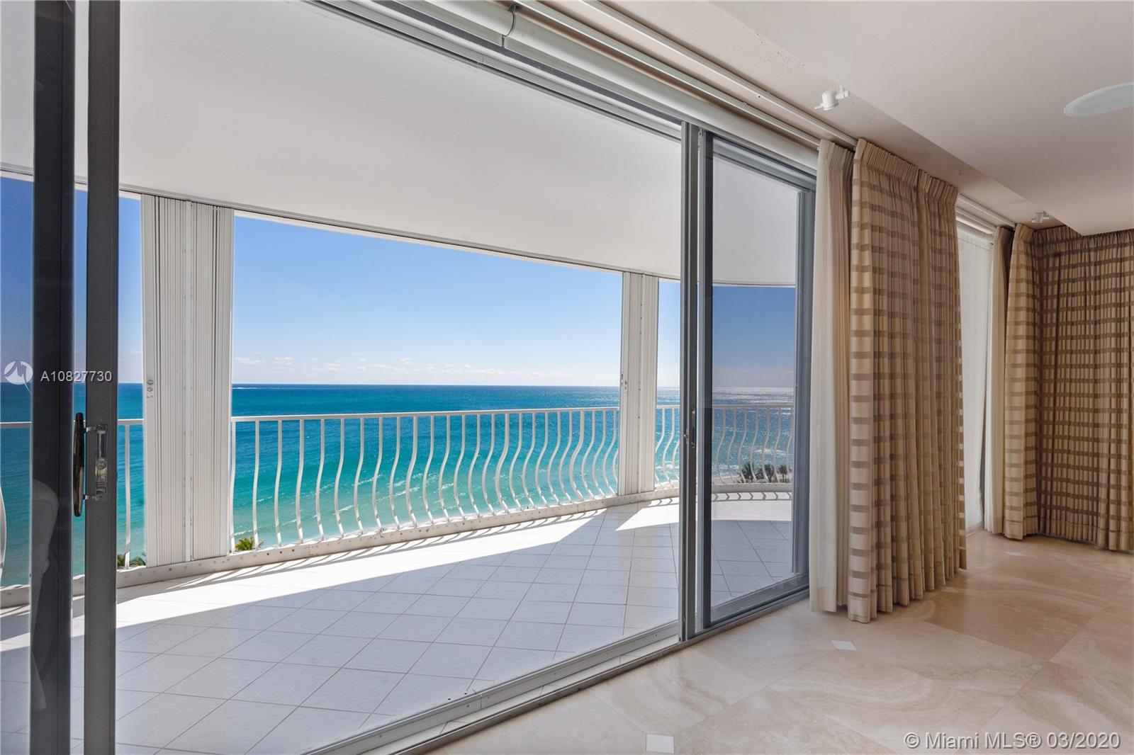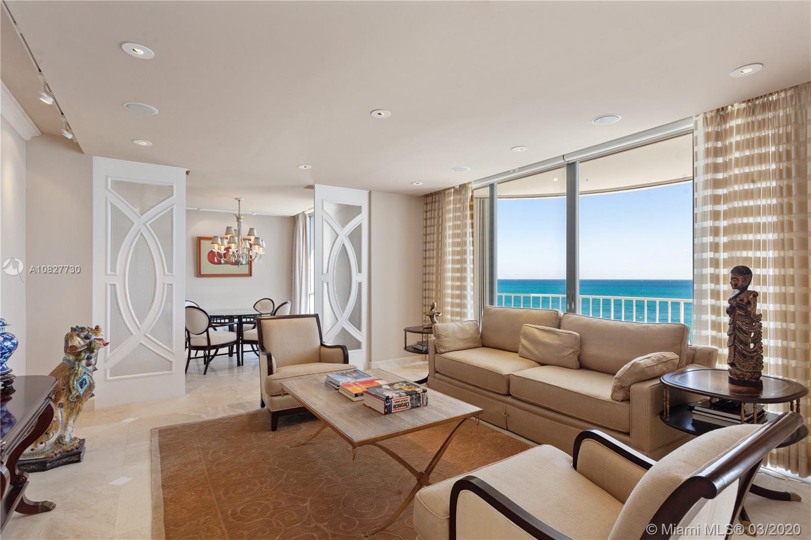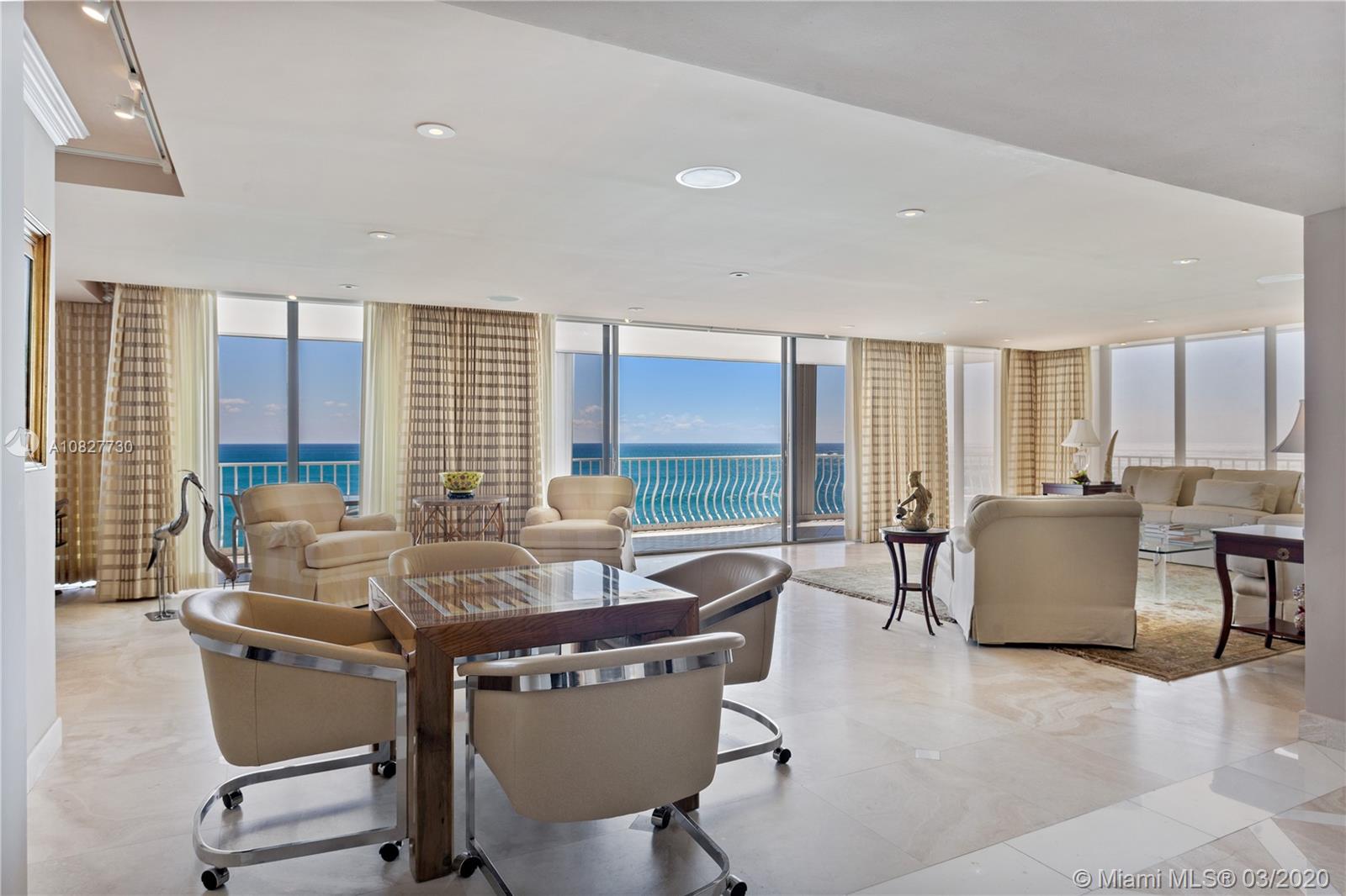 Ultra-elegant 3 bedrooms & 3.5 bath home with breathtaking direct ocean views. This residence boasts 3,300 square feet of interior space. Exquisite features include; gorgeous marble flooring, carpeted bedrooms; expansive glass windows, recessed lighting; sound system, electric blinds, silk window treatments, black out shades, expansive wrap-around terrace & spacious walk-in closets. Fabulous master suite features his/her baths, 2 walk-in closets & sitting area. Gourmet kitchen with state-of-the-art appliances. This is a luxurious building, recently renovated & considered one of the most prestigious sought after in the area. Enjoy luxury beachfront living w/24-hour valet, tennis court, pool, state of the art gym, on-site restaurant, social room and beach service.