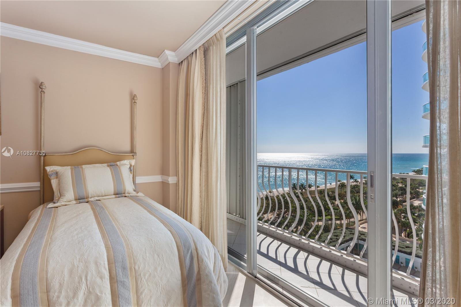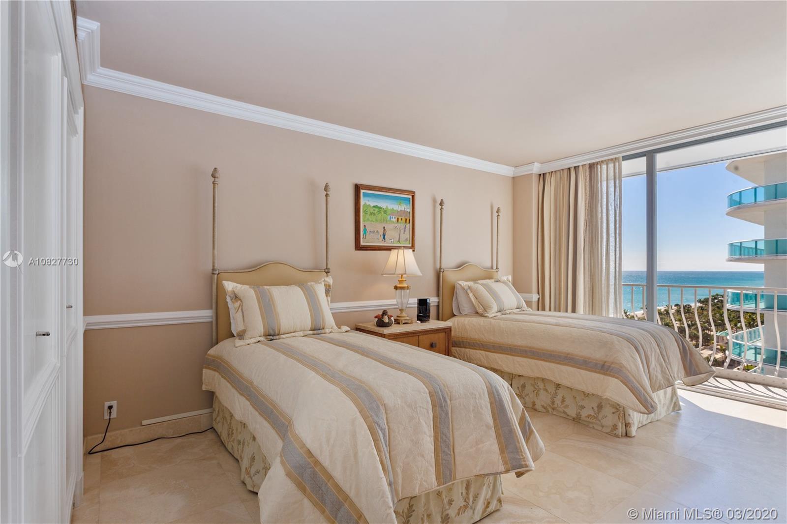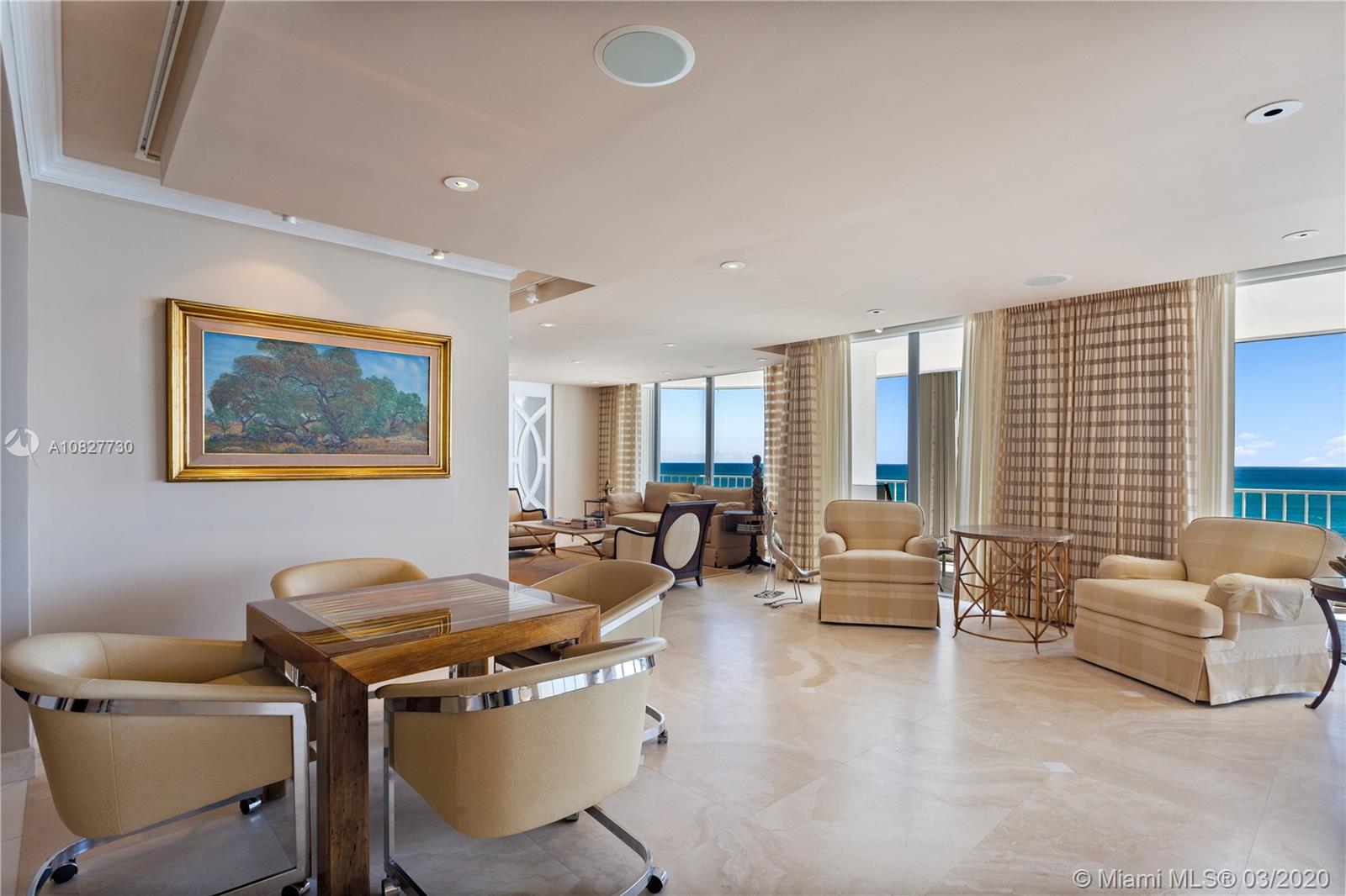 Ultra-elegant 3 bedrooms & 3.5 bath home with breathtaking direct ocean views. This residence boasts 3,300 square feet of interior space. Exquisite features include; gorgeous marble flooring, carpeted bedrooms; expansive glass windows, recessed lighting; sound system, electric blinds, silk window treatments, black out shades, expansive wrap-around terrace & spacious walk-in closets. Fabulous master suite features his/her baths, 2 walk-in closets & sitting area. Gourmet kitchen with state-of-the-art appliances. This is a luxurious building, recently renovated & considered one of the most prestigious sought after in the area. Enjoy luxury beachfront living w/24-hour valet, tennis court, pool, state of the art gym, on-site restaurant, social room and beach service.