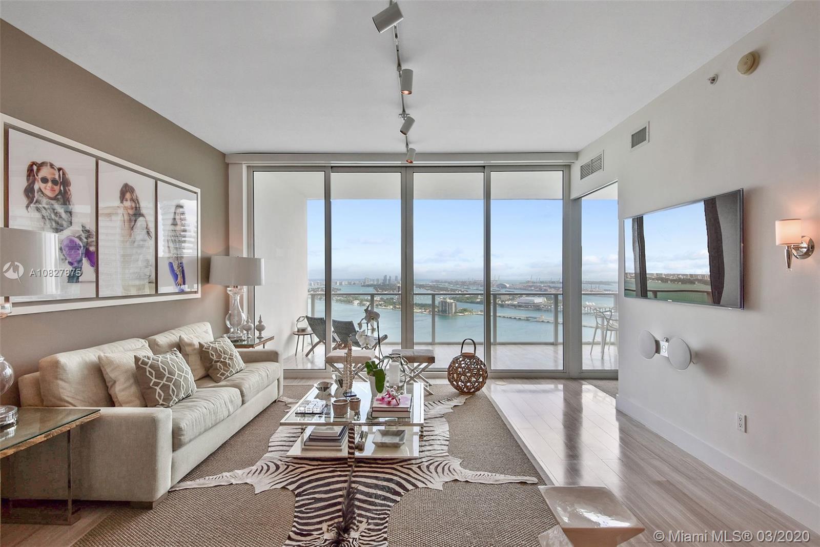 Unique flow-thru 1 bed plus den converted into a 2 bedroom with second full bath. Unobstructed views of Biscayne Bay Approx 1,128 sq/ft professionaly decorated, marble floors, electric shades, built out closets top of the line finishes a must see ! .Nested in an exclusive resort like building featuring private foyers and over the top amenities designed by Lenny Kravitz including 24-hr security front desk staff, 2 pools, fitness center and spa and private clubroom to mention a few . Centrally located in the heart of Edgewater near restaurants, just steps form Art Basel activities and galleries the Arts District, The Design District, Midtown and Wynwood and just a bridge away from Miami Beach. Easy to show Storage space on the same floor just outside the service door Broker Remarks: