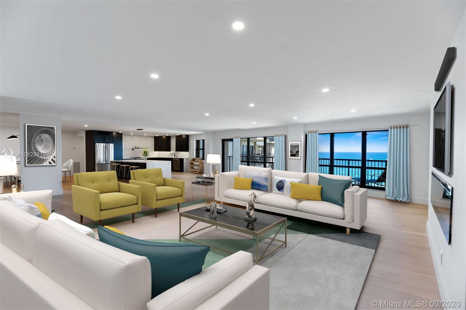 IMMEDIATE! PLENTY OF ROOM AND SUNSHINE FOR EVERYONE. COMPLETELY REMODELED, DIRECT OCEANFRONT CONTEMPORARY BEAUTY! BRIGHT AND AIRY FLOW THROUGH FLOOR PLAN OFFERS DIRECT OCEANFRONT, INTRACOASTAL AND SKYLINE VIEWS. OPEN AND SPACIOUS KITCHEN, LIVING AND DINING AREA. THREE BEDROOMS WITH EN SUITE, SPLIT FLOOR PLAN, OFFICE/DEN, 3.5 BATHS. LARGE MASTER SUITE WITH SOAKING TUB, HUGH SHOWER AND DOUBLE SINKS. MARBLE COUNTER TOPS THROUGHOUT, ELECTRIC FIREPLACE, EXTRAORDINARY LIGHT FIXTURES, LAUNDRY ROOM WITH SINK AND BUILT-IN CABINETRY, ETC. OCEANFRONT HEATED POOL, TIKI HUT W/BBQ AREA, TENNIS, BOCCE, PICKLE BALL, FIRE PIT AREAS, GYM, SAUNAS, VEHICLE CAR WASH AND 24/7 SECURITY. SMALL PET WELCOME. VACANT,QUICK CLOSING. VIRTUALLY STAGED.