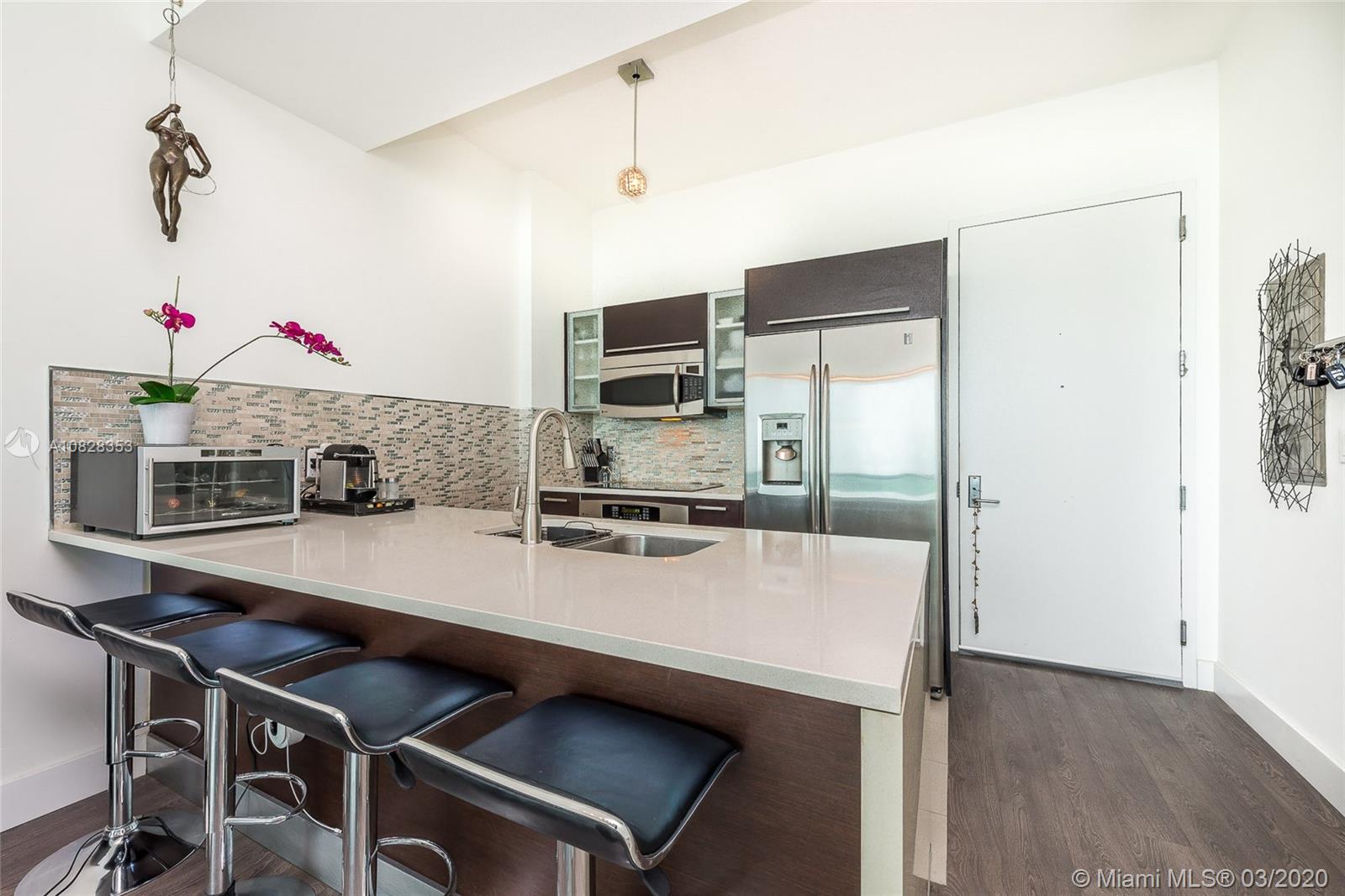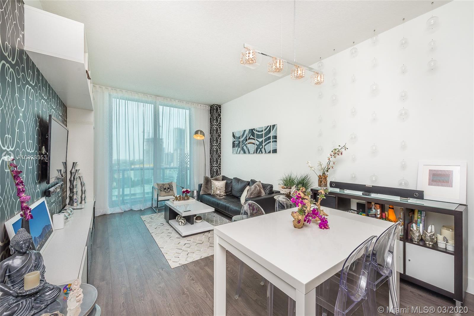 Amazing PH for sell at Gallery Art, the heart of Edgewater. Completely remodeled. Owner occupied. It looks like a brand new unit with smart outlets throughout and ECO BEE A/C thermostat controlled by Alexa. NE views of the bay and skyline. High volume ceiling 10'. Open living and dinning room. Kitchen with quartz countertop, SS appliances, glass backsplash, hardwood floors, tankless water heater, custom made closets, pantry, office space incorporated in the bedroom, custom blinds and much more. Few minutes away from Midtown, Design District, Miami Beach and Downtown. Great amenities.