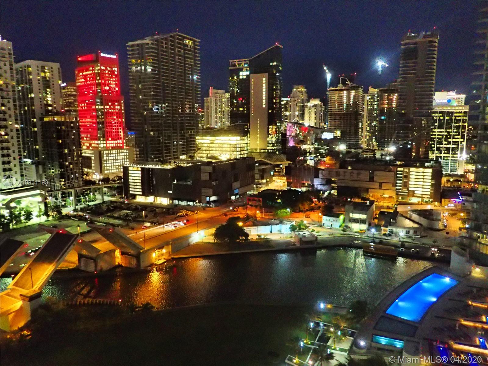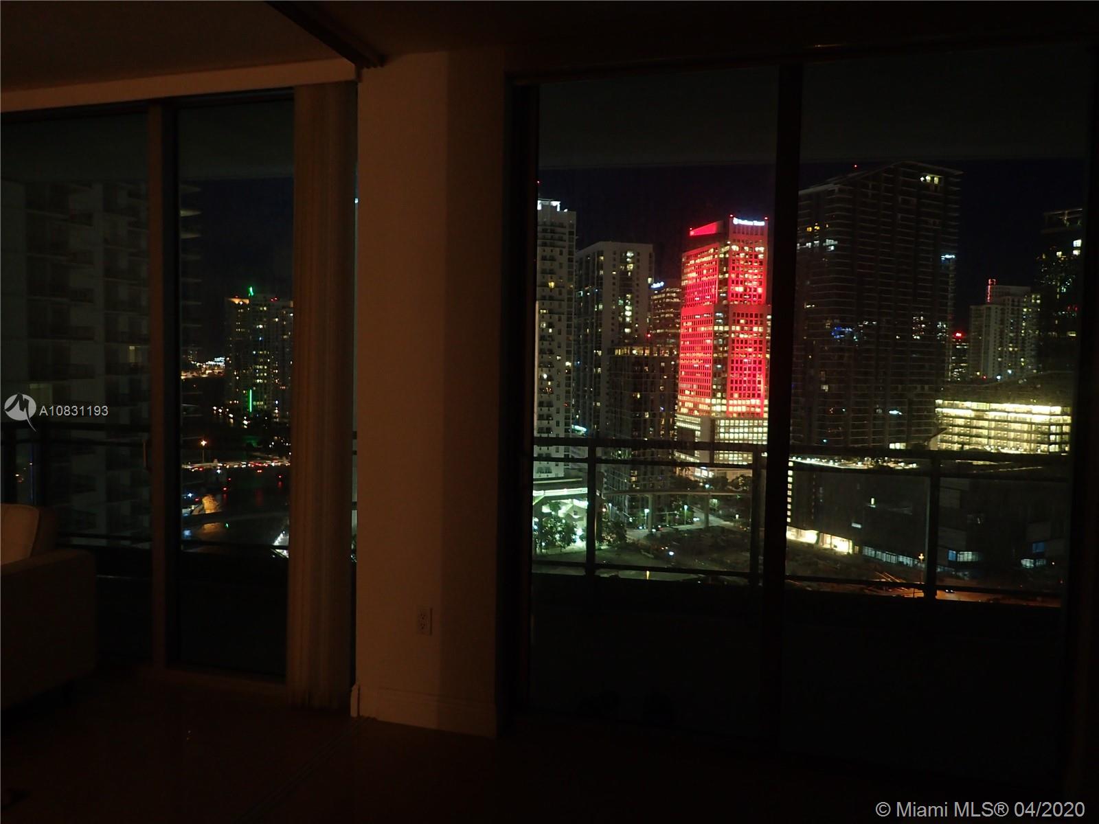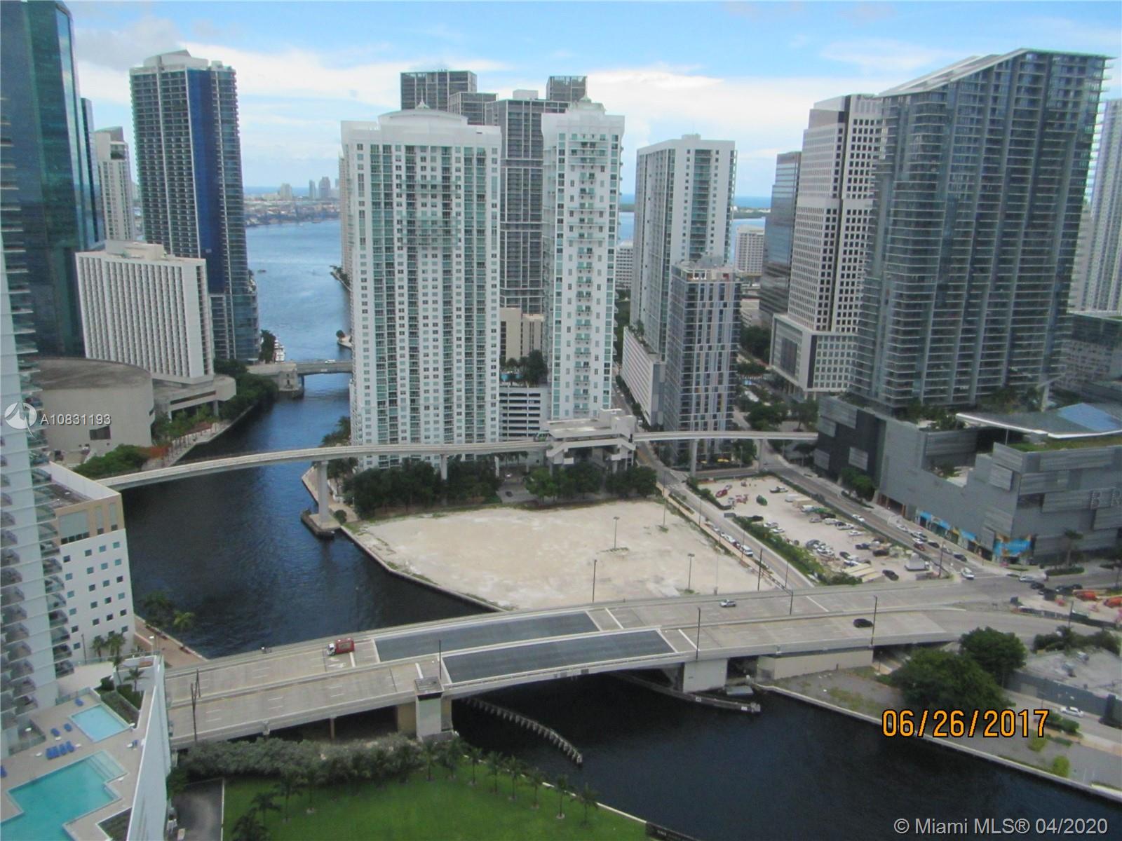 Cash offers only. Beautiful one bedroom offering one of the largest interior spaces in Brickell area with the rare addition of a guest bath as well as a large in suite master bath. Spacious bedroom with access to balcony, large walk-in closet and a separate good size closet. Large living/dining, plenty of kitchen cabinets. Stainless steal appliance complement the off white limestone counter top and brown wood cabinetry. Large open balcony with fantastic views of the Miami River and Brickell's skyline. Steps to City Center's wonderful shopping, restaurants, bars, lounges. Easy access to I-95, Metromover, Miami Airport, Miami Beach, Key Biscayne, Theaters and Museums.