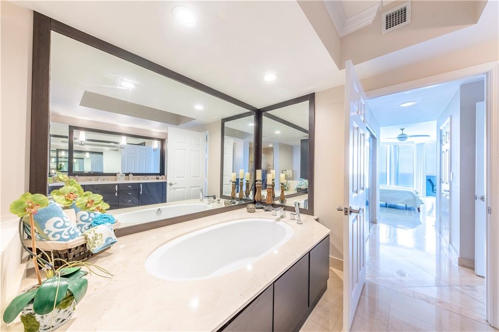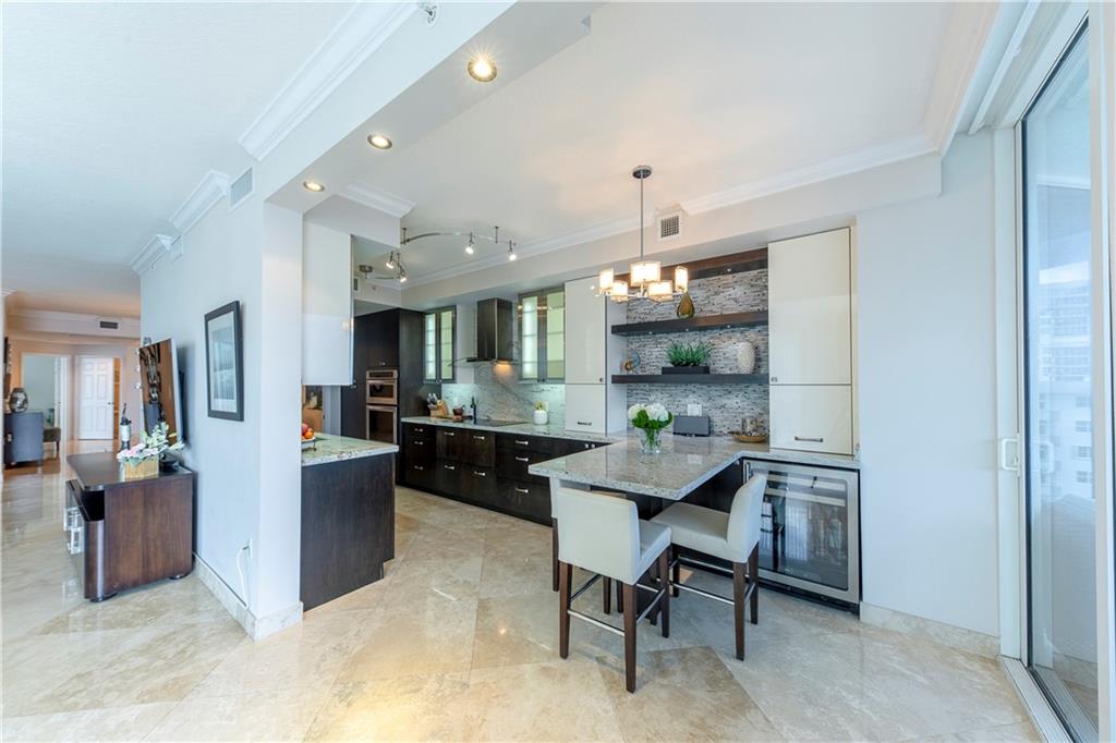 Welcome home to this thoughtfully renovated 3+2.5 in L'Ambiance, the newest building on The Galt Ocean Mile! This gorgeous apartment features stunning direct ocean views, marble flooring throughout, a beautifully remodeled kitchen with an induction cooktop, a real vent hood and gorgeous breakfast bar. The master bath has been updated and the master bedroom makes you feel like you're on a cruise ship with it's amazing ocean vista. Elegant beach living awaits with an ocean front pool with beach chair service, a fitness center, BBQ pavilion, sports lounge and more, all within walking distance to Lauderdale by the Sea, shopping and dining and entertainment. Included are 2 garage spaces, valet service, storage room, climate controlled wine room, 24 hour security and so much more. Move right in.