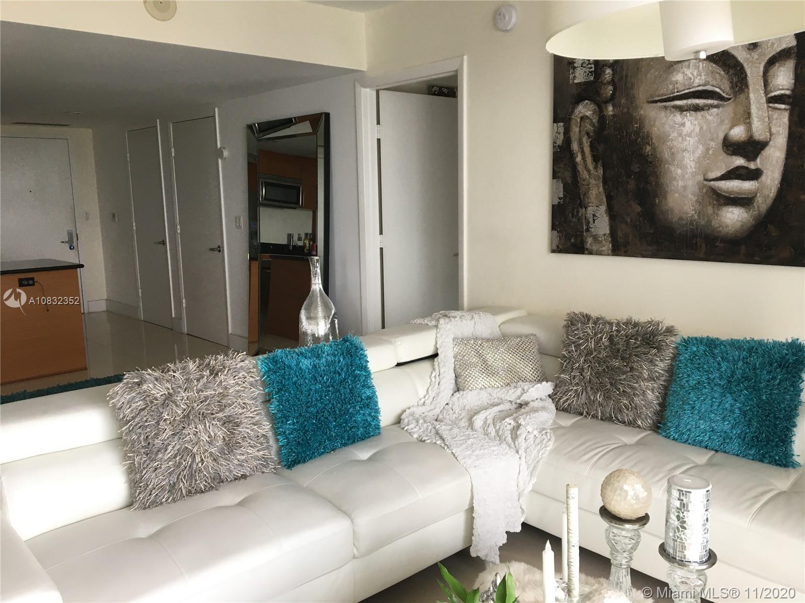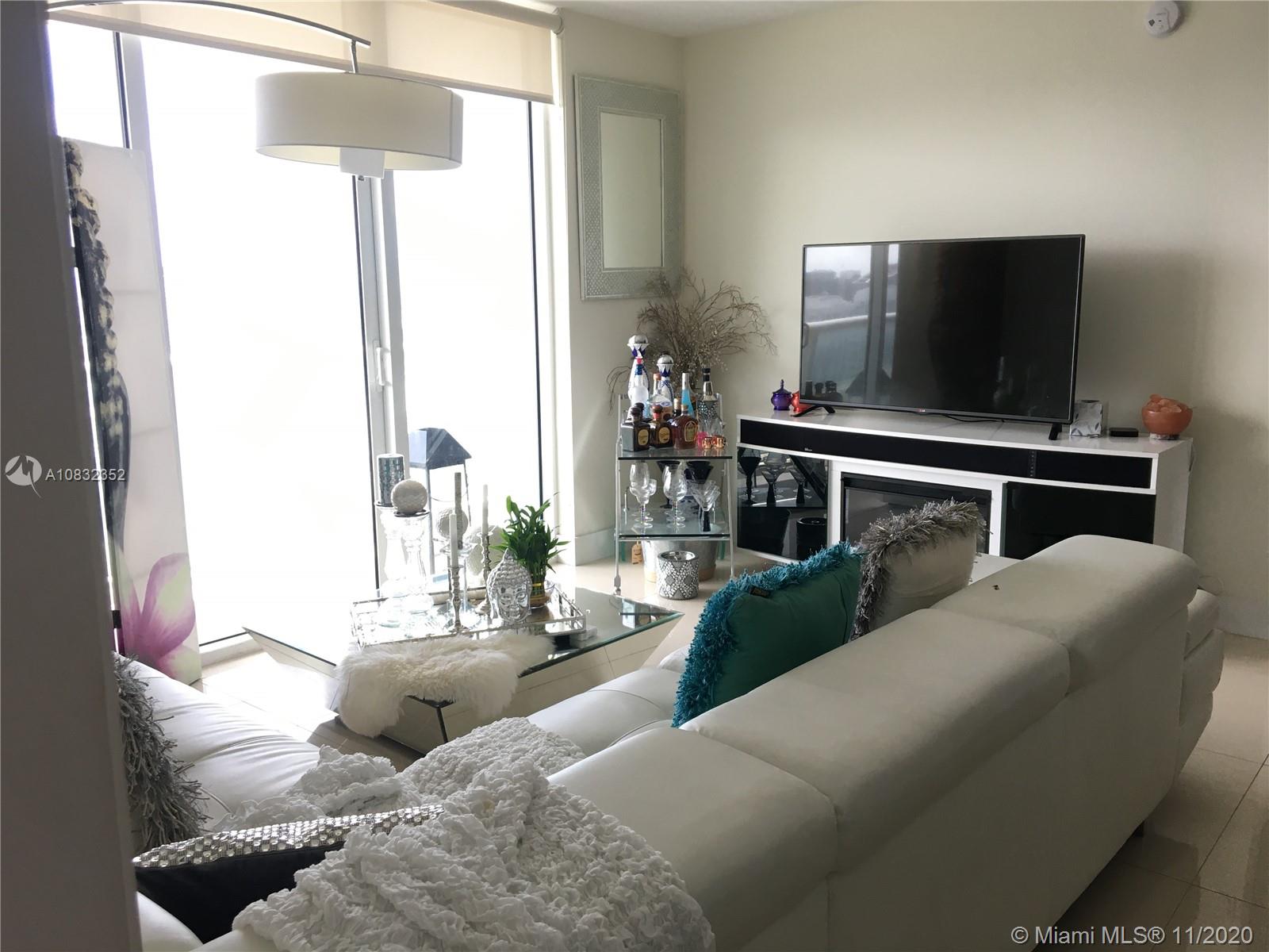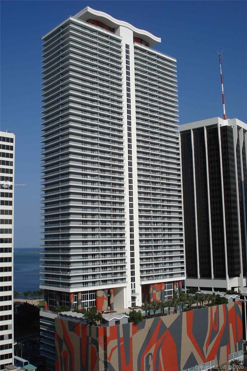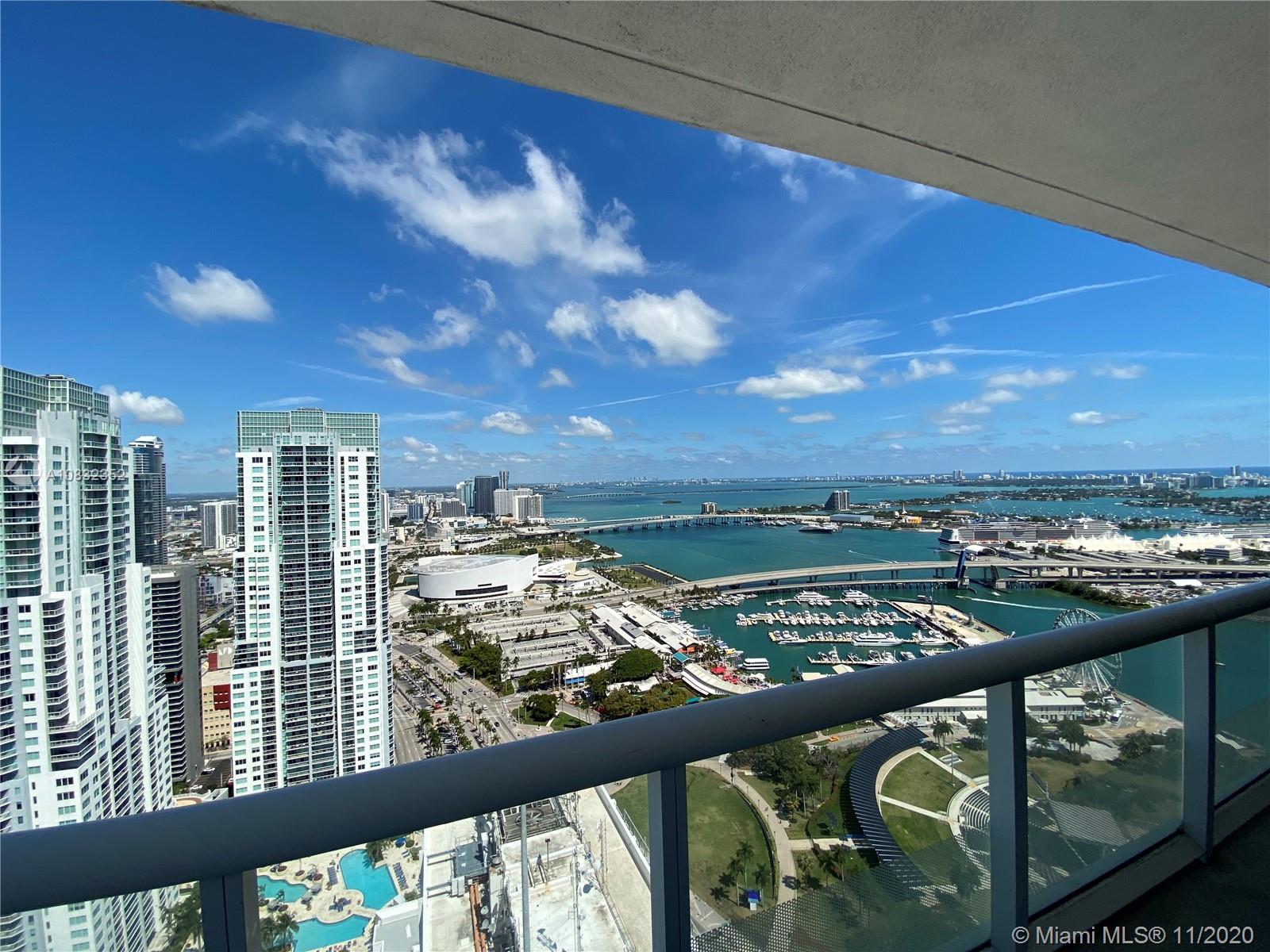 Enjoy the sweeping stunning water views from this 49th floor corner unit at the prestigious 50 Biscayne building. Designed by Sieger-Suarez with interiors by the renowned David Rockwell, the luxurious amenities and finishes at 50 Biscayne will please the most discerning buyer. The building features a 3 story lobby, 2 level club room with kitchen, billiards and bay views, 10th floor infinity pool with cabanas and daybeds, 2 level fitness and spa center overlooking Biscayne Bay with gym, meditation and pilates room, 24 hour valet as well as assigned parking and concierge service. This 2 bedroom spacious home in the sky has porcelain flooring, floor to ceiling windows and teak kitchen cabinetry. Actually rented month by month at $2700