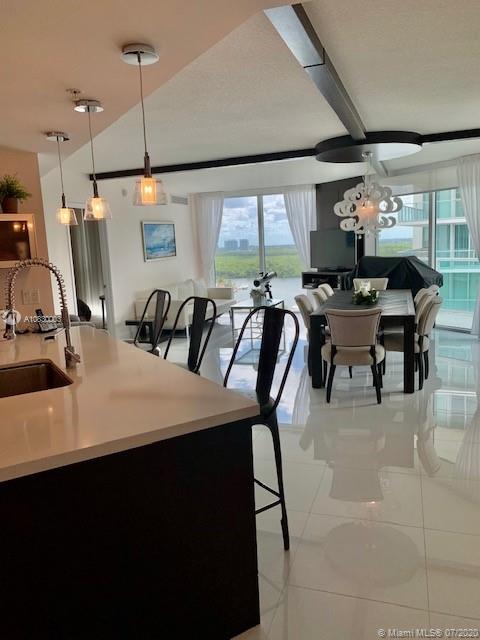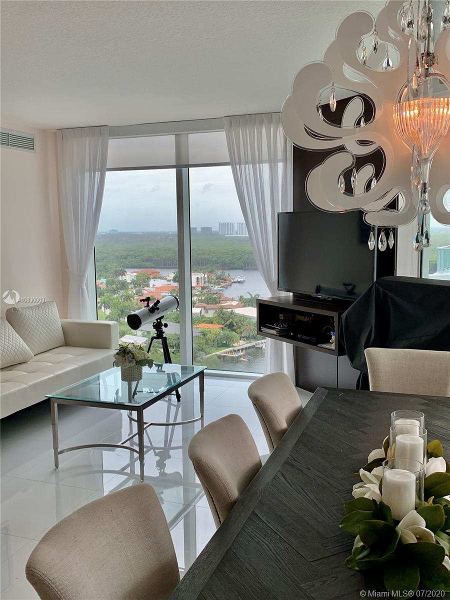 Enjoy beautiful water views from this large 3 bdr/2 bth (1458sf) unit, in Sunny Isles Beach. Open floor concept with marble floor in living room and carpet in bedrooms. Large terraces. Two parking spaces, 1 assigned and 1 valet. Washer and dryer inside. Excellent amenities, heated pool, gym, steam room. Beach Club at Sole. Minutes to the beach and Aventura Mall