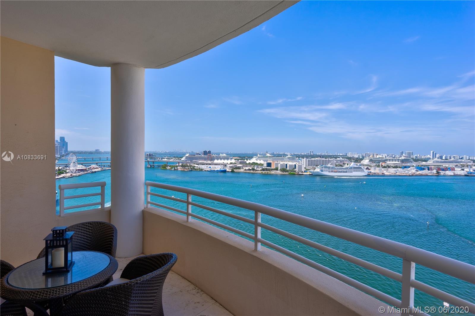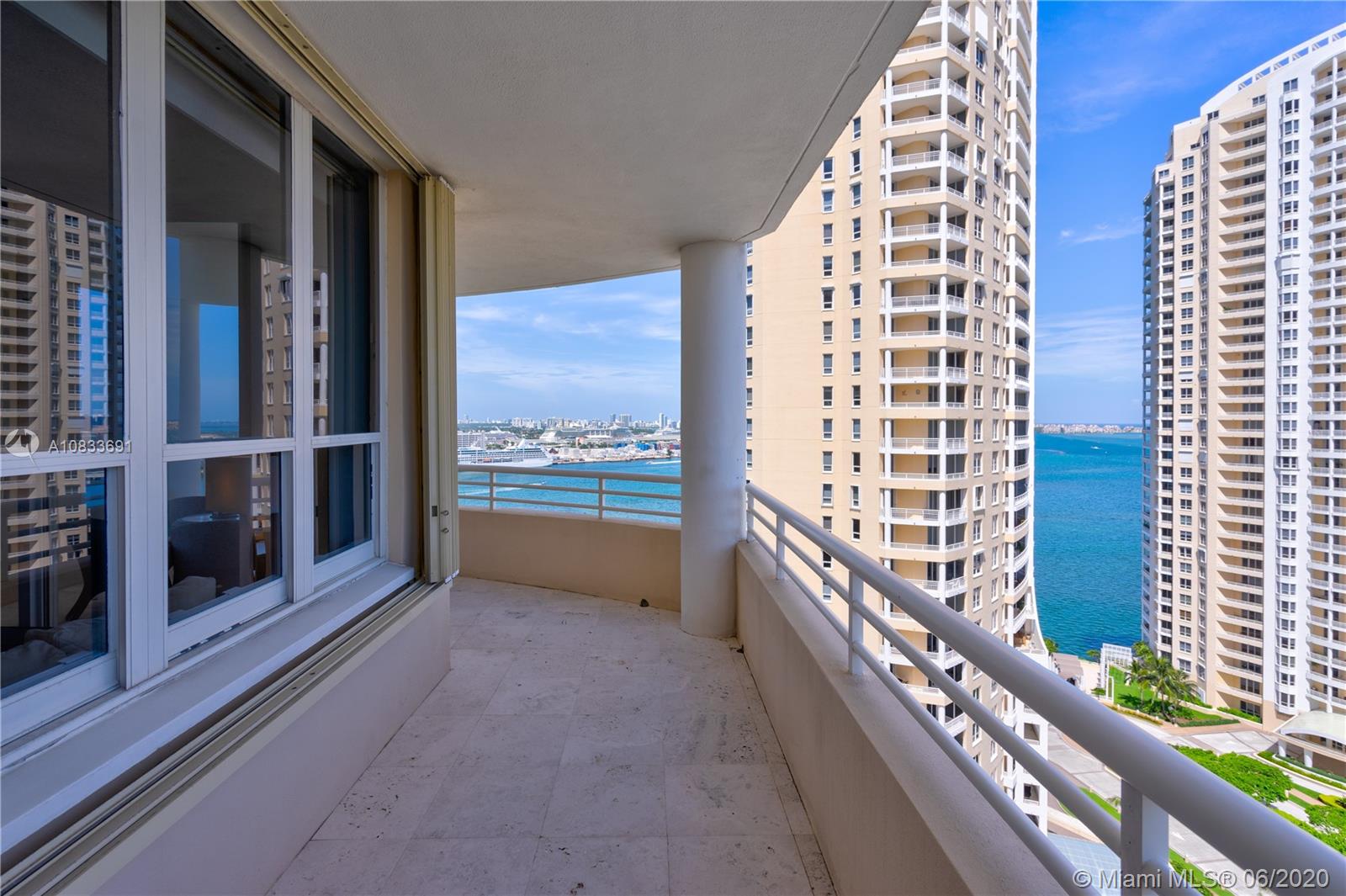 Breathtaking bay views from this 2 bedroom 2.5 bath in the exclusive Brickell Key, a private island in the heart of Miami that offers children’s playground, parks, restaurants, deli market and much more. New kitchen and new tile floors in the bedrooms. Full service condo with concierge, pool, BBQ area, clubroom, squash, conference room, gym, sauna and complimentary valet. 2 assigned parking spaces. Basic cable and internet included in the HOA fees.