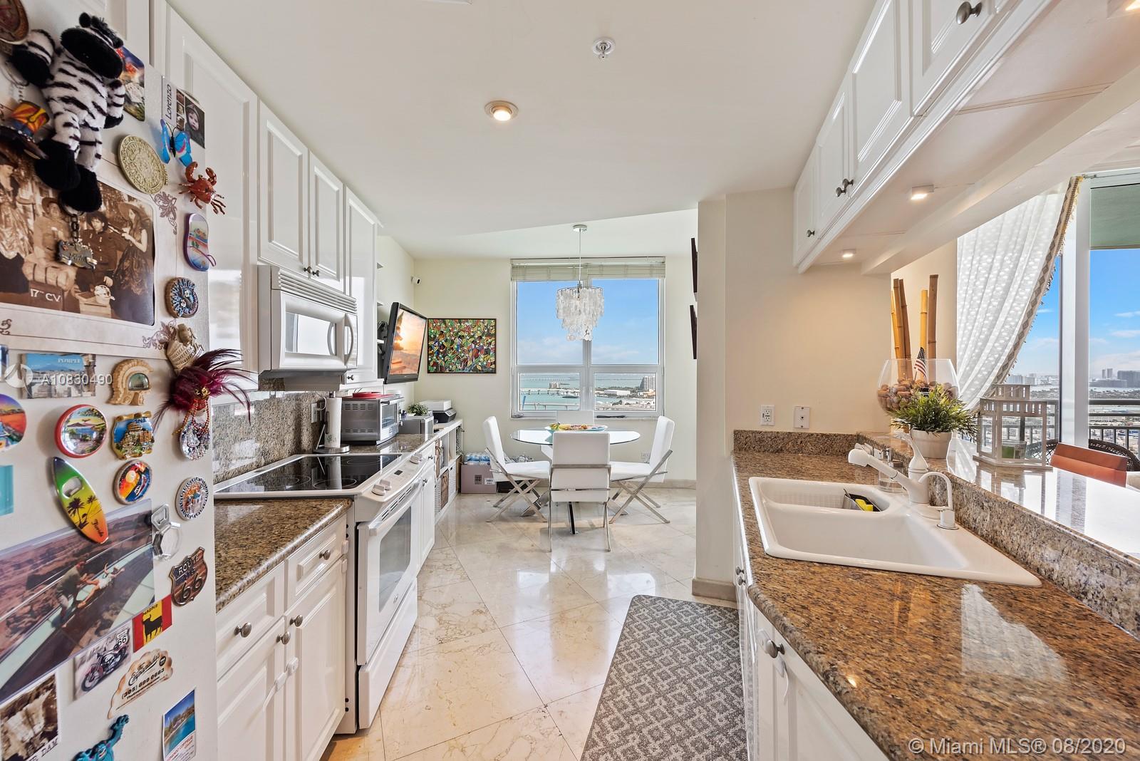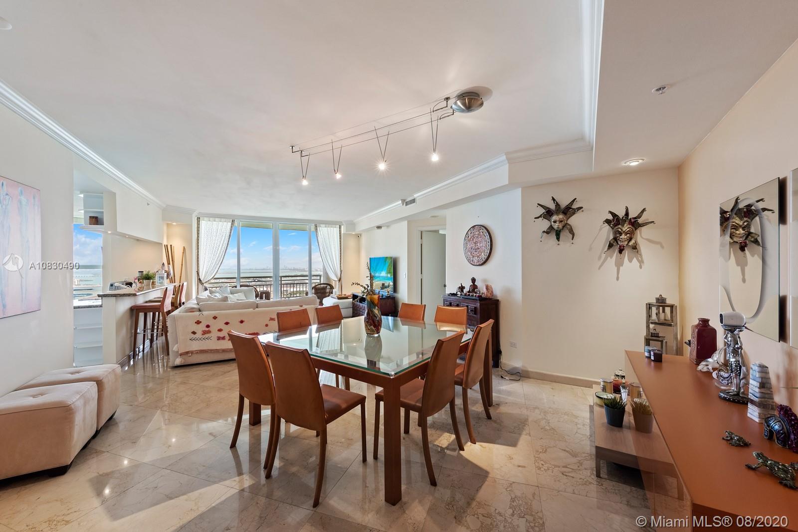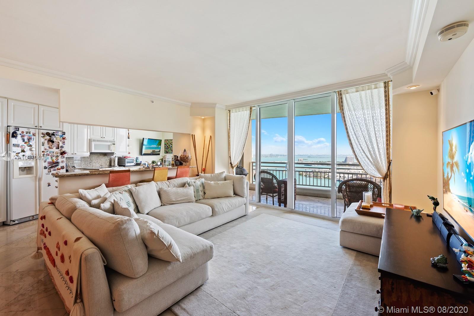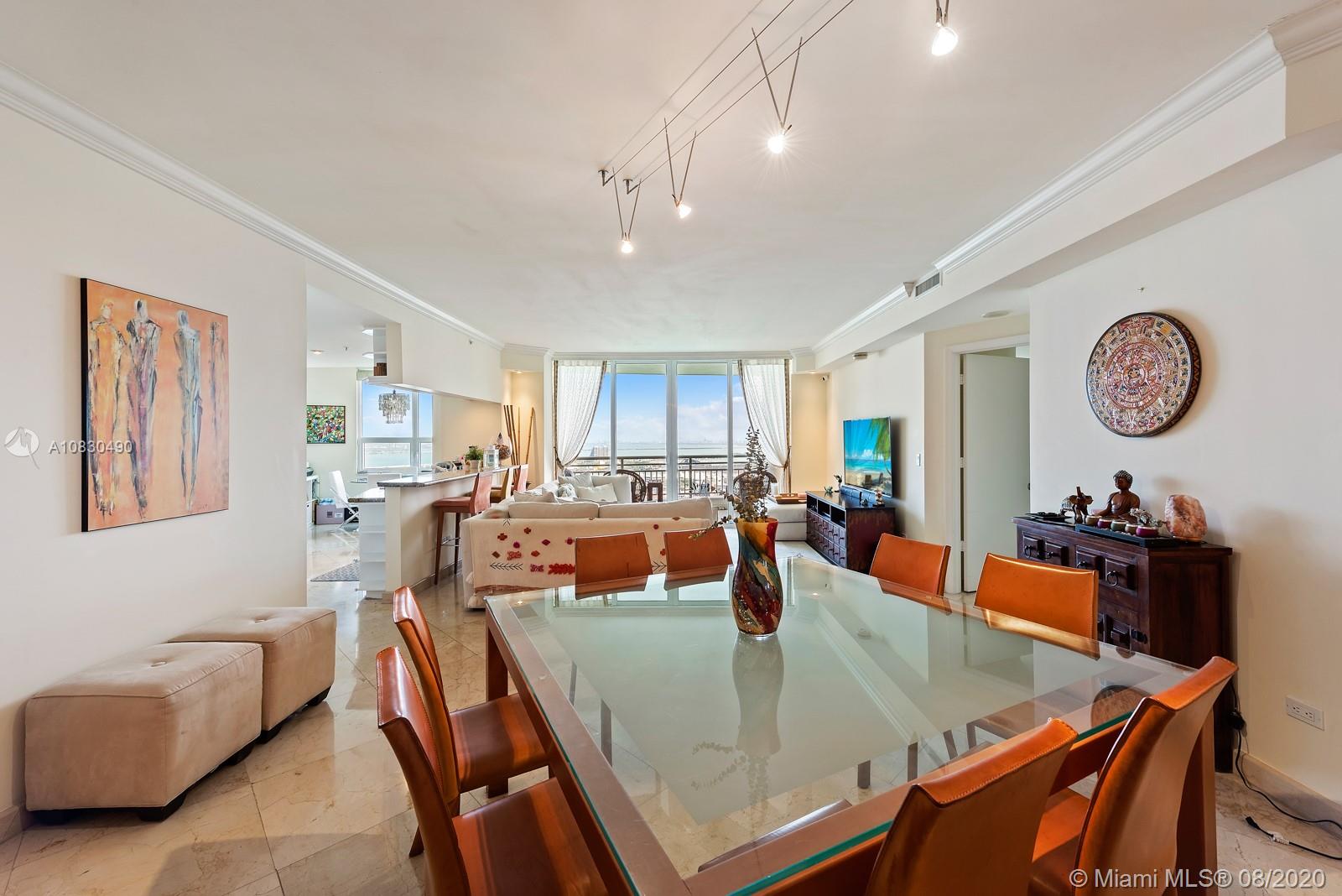 Spectacular views from this spacious One bedroom plus Den unit in prestigious Tequesta Three. Open kitchen, French doors in Den, that can be easily converted to a second bedroom with a full bath and a walking closet and a full bathroom. Unit in prestigious Three Tequesta Point. Walk to restaurants, shopping, free Trolley service to the Brickell Area. First class amenities..Must see!!