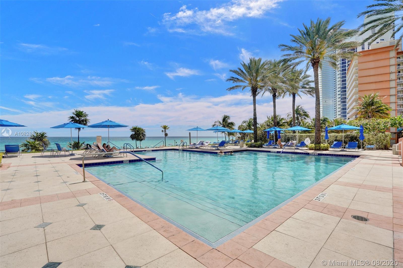 Best deal in Sunny Isles! Direct ocean, beach and sand views. 2 bedrooms plus den. Very well kept condo with a bright and cheerful feeling. A great value like this is seldom seen in and oceanfront building. Private elevator with direct access to the gym and spa. Marble floors, eat in kitchen with large pantry. Ocean One is a full service building with 700 ft. of beach, on-site café on the pool deck, 2 tennis courts, tiki huts for barbecue. Easy to see.