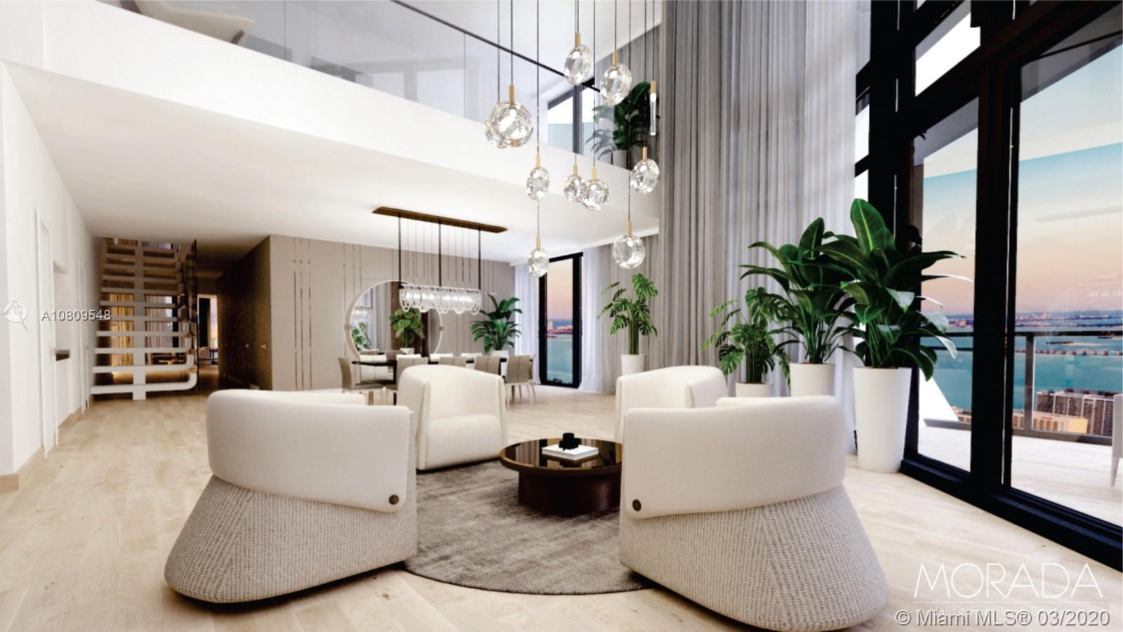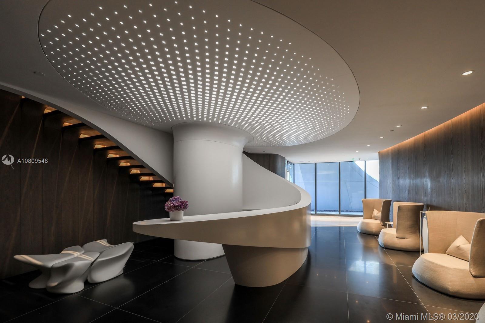 One Thousand Museum by Zaha Hadid, Miami most prestigious new residential tower pushes the limits of innovations and blurs the lines between art and architecture. The limited collection of museum quality home offers an unprecedented level of service and amenities. This 8,344 sq. ft. duplex townhouse features a flow through floor plan with unobstructed Biscayne Bay views, a floating staircase designed by Hadid, 20 Ft. ceiling, library , loft, 5 bedrooms, smart home technology and custom closets. The photographs are renderings.