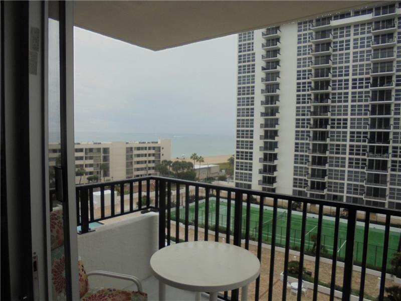 2 GARAGE PARKING SPACES !!!!!!! Lovely 2 bedroom unit with nice view of ocean, beautiful pool deck, 2 pools and tennis. Good condition, nice kitchen cabinets and tile floor which is not original. Split bedrooms, Floor to ceiling impact windows and doors. New Hot water heater, comfortably furnished and close to laundry room. Many amenities including exercise rooms, library, game room, party room and 24 hr. concierge. Close to shops, Pompano Beach Pier, New Beach house restaurant and more. No age restriction, No lease 1st year of ownership.
