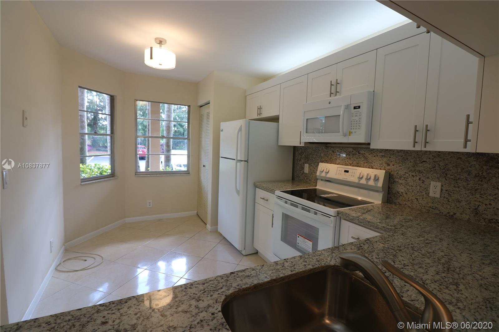 Enjoy life in this desirable ground floor unit with beautiful pool view. BRAND NEW Kitchen cabinets, granite tops, new sink & faucet, new lighting, new range, microwave & dishwasher. BRAND NEW Bathroom cabinets, sinks and faucets, quartz tops, new toilet in master bath, new closet doors. Central A/C & Washer/Dryer replaced in the last year. Freshly painted & clean interior. Popcorn removed from ceilings. Enclosed terrace with floor to ceiling glass doors for added living area under A/C and to enjoy the view. Tiled floors throughout. Large Master & walk-in closet, spacious 2nd bedroom. Parking right upfront. Outstanding 55+ community with amazing recreational facilities, 24-7 security, on-site first responders, shuttle buses, expanded cable + much more. Rentals after 2 yrs. of ownership.