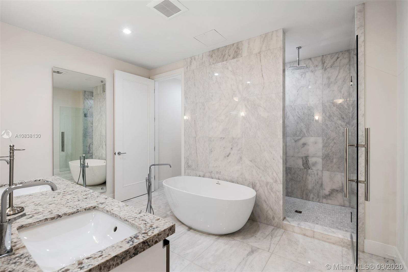 Amazing, spacious, pristine unit at Coral Gables' Biltmore Parc boutique condo! Walk-in to your own, private elevator lobby with double entry doors to an open, airy, luxurious 2 Bedroom + Den, 2.5 bathroom with open spaces. Combine your living areas with a spacious balcony by opening the accordion style impact doors and enjoy this Zen like environment. The spacious master bedroom boasts a luxurious en-suite bath with stand-alone tub, walk-in rain shower, dual sinks and Yamini Italian closets. Take advantage of all the upgrades the unit has such as white carrara marble throughout, water treatment system, A/C Antimicrobial double UV light system, Yamini italian closets, and Hunter Douglas Automatic Window Treatments!