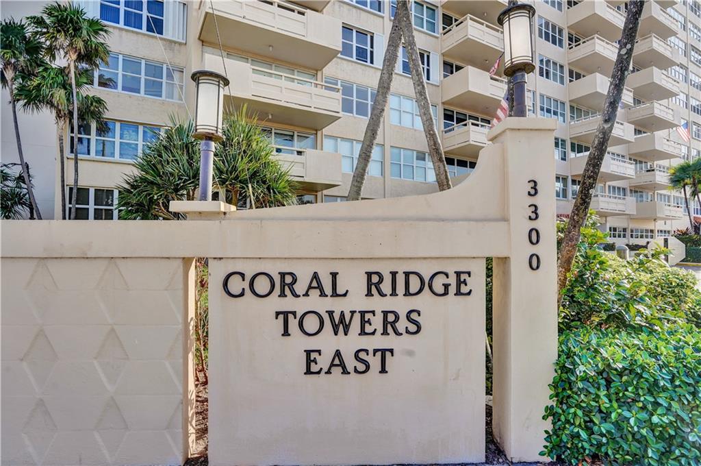 Charming apartment with tree top views by day and Galt Mile Lights by Night... Beautifully renovated with open kitchen design and ceramic floors throughout... Coral Ridge Towers Premier East building includes exclusive ownership of Private Clubhouse situated on the Intracoastal... With an Olympic size heated pool, Exercise room, Bocce Court and so much more... You'll love living here!! Only steps to the Beach, Banking, Shops and fine dining at Ft Lauderdale's North Beach and Galt Ocean Mile....