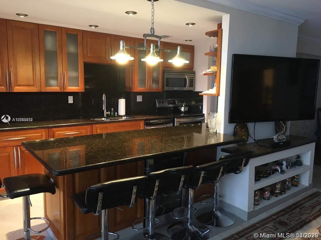 Fully renovated and spacious corner unit. Great location in the heart of Sunny Isles, 6 minute walk to the beach, parks, restaurants and shopping centers. Quick drive to Aventura Mall. A+ Schools and excellent free schooling with after school programs. Free city shuttle and new supermarket. Water facing view. On a low floor, resulting in less wind. Large master bedroom has extended walk-in closet and jacuzzi bathtub. There is a third room built as an office. New eat-in kitchen with granite countertops and island. Stylishly remodeled stone backdrop in the dining space. Building is recently renovated with new elevators. Included in the maintenance fee: internet/cable, appliance maintenance insurance, 24/7 security,water, trash removal, pool, gym, billiard/ game room, library.