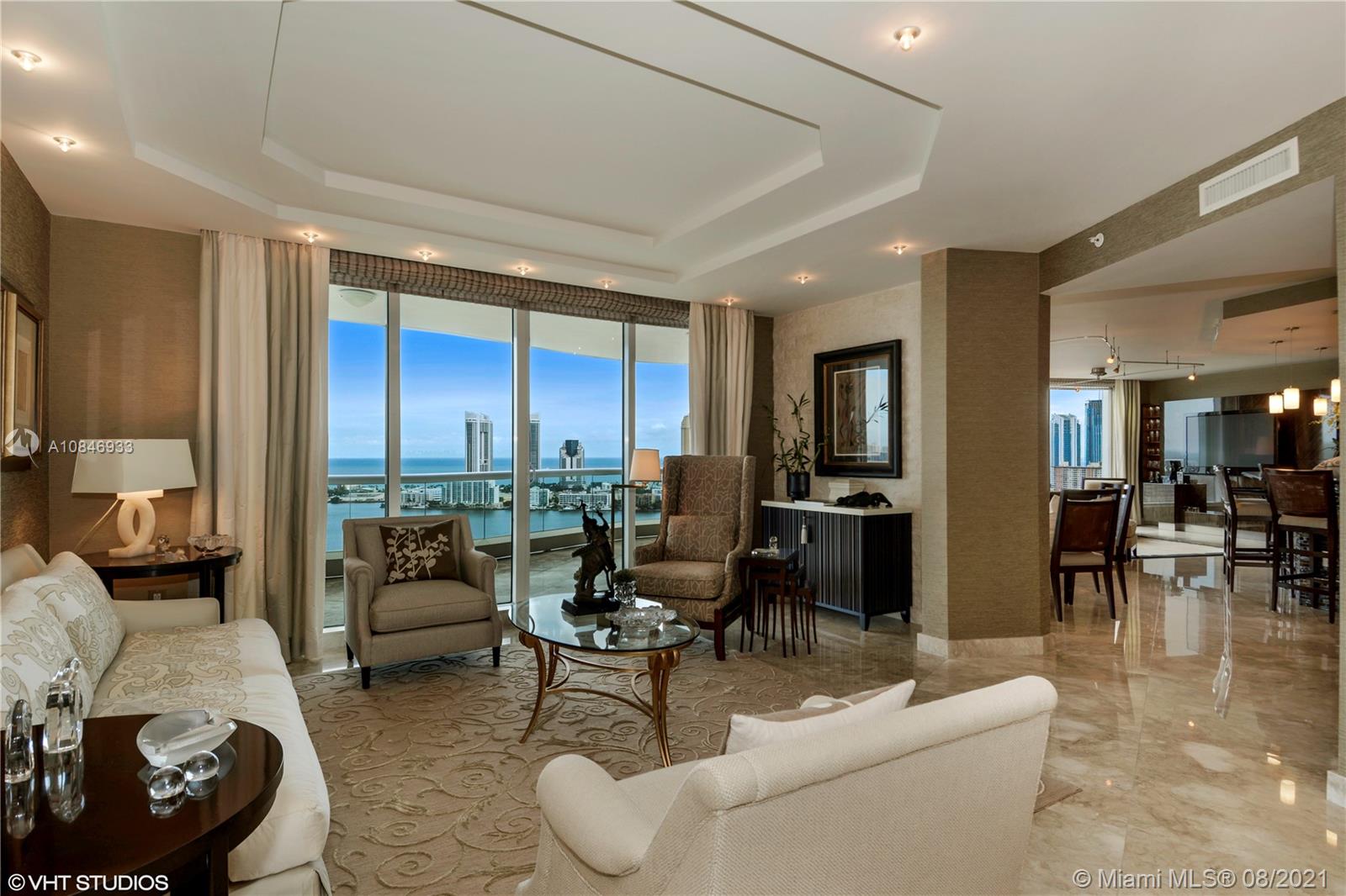 Are you the discriminating buyer who is looking for a premier, luxury residence in Bella Mare to call home? Then this desirable, modified 03 line, 3528sf apartment on a high floor with 4BR/3.5BA + family room might be your perfect choice. From the moment you enter this designer decorated unit, you will be awed by the amazing intracoastal & ocean views, its expansive balconies, its luxurious appointments and its exquisite custom built ins. Ideal for both casual and formal living. Enjoy Bella Mare’s own amenities and the exclusive country club lifestyle of Williams Island. Paradise within the heart of the city.