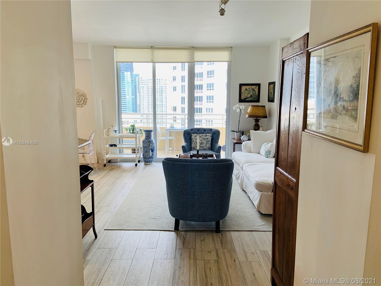 Largest 1 bed 1.5 baths apartment in prestigious Two Tequesta Point building in Brickell Key Island. This high floor unit offers breathtaking bay, city skyline & island views. Large balcony, great tile floors throughout, marble baths, California walk- in closet, open kitchen to living/dining room & granite countertops. Enjoy the dedicated barbecue area overlooking the bay & pool, tennis courts, two story bay front gym with basketball, squash & racquetball courts. Full service luxury building with 24 hrs concierge service, professional management and complimentary valet services for your guests. Brickell Key Island is a manicured maintained community located only a short walk away from the Brickell Financial District, Brickell City Center & all area restaurants and entertainment venues.