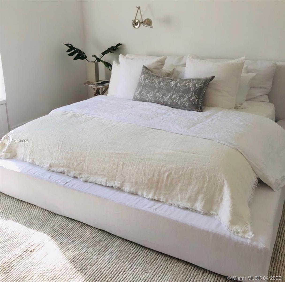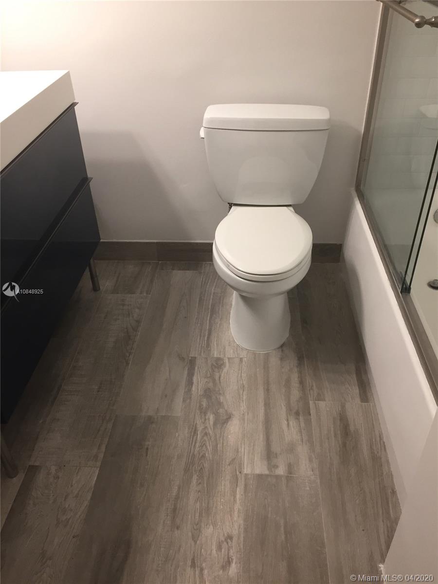 Tastefully designed 1 bedroom unit at Mirador North. City and partial bay views. Upgraded kitchen with Stainless Steel appliances and newer cabinets. Laminate wood floors throughout. Lots of closet space, walk in closet in the bedroom. Modern bath with subway tiles, new vanity and new flooring. New impact windows. Valet parking available for $50/month for the first car. Building is located on quiet, residential bay side of South Beach. Valet parking, pool, BBQ area, state of the art fitness center and on site market, security and concierge on property. Bike racks available. Furnishings in photos available for purchase. Pet friendly! Great location with Whole Foods, restaurants, cafes and Flamingo Park. The least expensive 1 bedroom unit in the building! Don't miss this one!