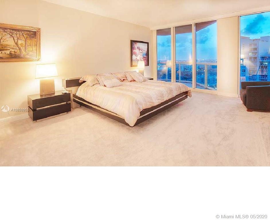 HIGH-END SPACIOUS CONDO WITH AMAZING BAY AND CITY VIEWS! Turnkey furnished three bedroom, three bathroom condominium with two balconies and floor-to-ceiling windows on the 32nd floor. The semi-private elevator is within a few steps from the units entrance. Marble floor in the living & dining area and the kitchen. Capacious master bedroom, master bathroom with jacuzzi tub, walk-in shower, double vanities and bidet, large walk-in closet. Huge kitchen with bar stools and the breakfast table & office space. Pools with water views, spa, gym, courts, library, game room etc. Two parking spaces int the garage under the building. HOA included basic cable, internet and water. Reception area with valet parking. Close proximity to Aventura mall.