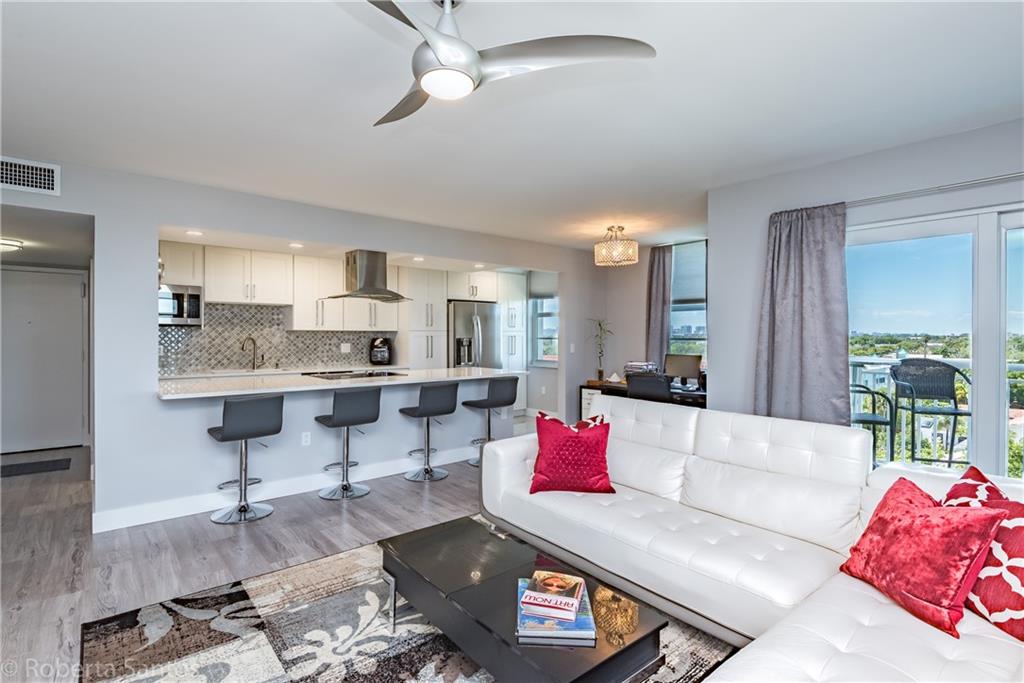 The best unit in the building!! One of the larger 2 bedrooms, 2 baths located in the corner with tons of natural light. Completed renovated in 2017 with permits, featuring quartz kitchen countertops, double shaker cabinets with dual color, SS appliances, modern bathrooms, 2016 AC, 2017 water heater, brand new impact windows and balcony sliding door, COVERED assigned parking and plenty of guests parking. Washer and drier and tons of closet space. Dinning room/space currently being used as an office. Additional bike room storage. Secured lobby entrance. Open balcony with a beautiful view from the 6th floor. Great location in Imperial Point, easy access to the freeway and minutes away from the world famous Ft. Lauderdale Beaches.