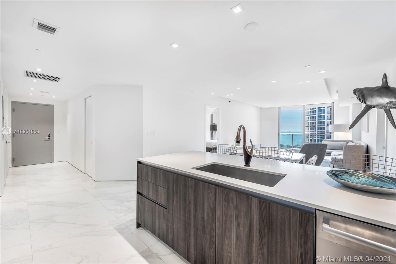 Bask in magnificent water views from every corner of this unit on the 'o8 line at Aria on the Bay, the most sought after building in the heart of Edgewater located directly across from Margaret Pace Park! This ultra chic turnkey unit w/private elevator which opens up directly to your foyer. Custom walk in closets w/built-ins, custom shower, floor to ceiling impact sliding doors with electric shades. Marble flooring, hanging ceilings with recessed dimmable lighting throughout. Italkraft cabinets in the kitchen with high tech appliances & quartz countertops. SQFT w/Balcony is 1539. Great location w/easy access to all entertainment districts & transportation (Airport and major expressways). Live Lavishly w/impressive resort-style amenities and exceptional staff!