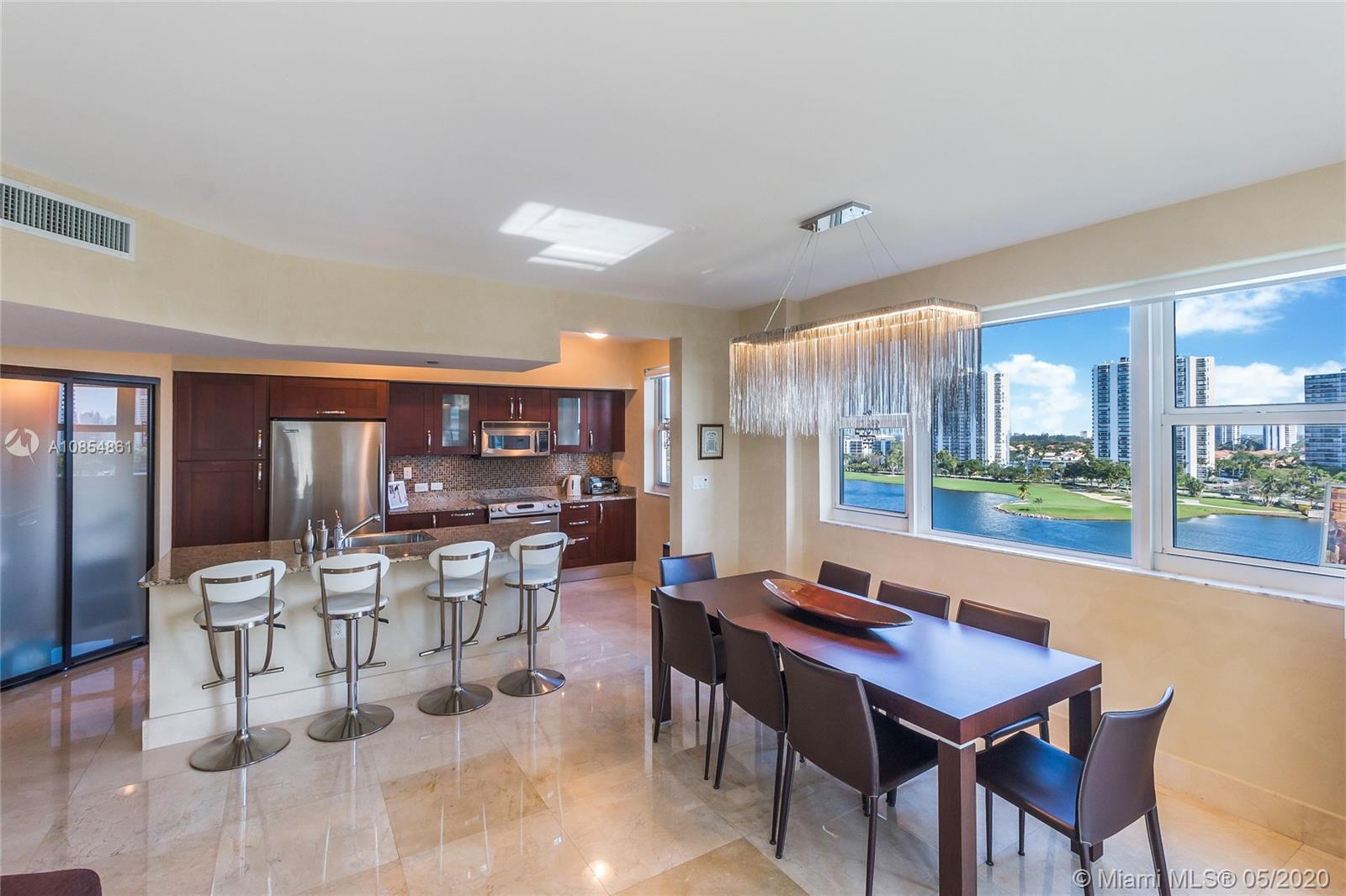Welcome to residence 916! This elegant and immaculate corner unit has three bedrooms and stunning views overlooking the golf course and ocean! Featuring marble floors throughout, custoom closets, hunter douglas window treatments, custom closets doors and more upgrades! Unit comes with 2 parking spaces and a storage unit. Turnberry village offers a full range of amenities including state of the art fitness center, spa, resort style pool, 24/7 secured lobby, party room, tens room and more. Great location on prestigious East Country Club Dr, close to fine shopping, dining and entertainment. Less than a 5 minute trip to the beach! A must see.