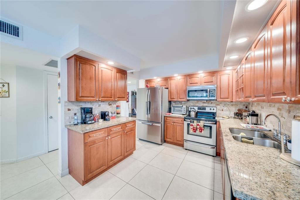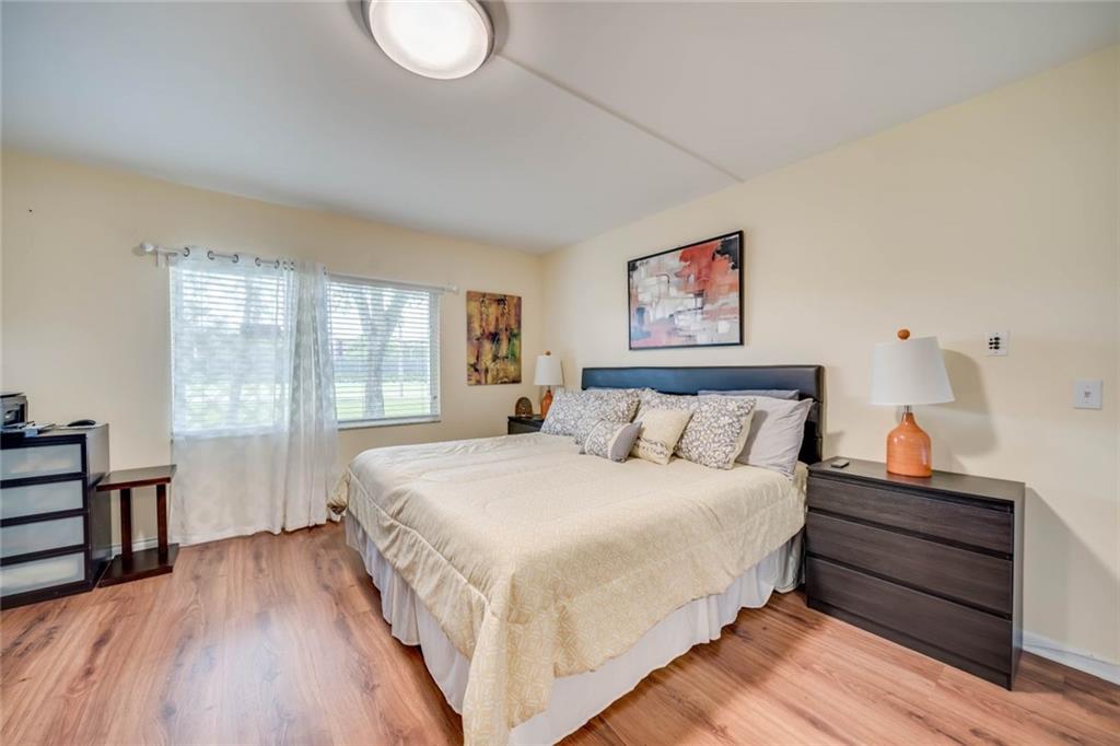 Fully upgraded corner unit, most convenient first floor, 2/2, MOVE IN READY, well maintained, tastefully remodeled, garden/ tennis court view, new windows, accordion hurricane shutters all around, ceramic and laminated flooring, granite countertops, S/S appliances, AC is approximately 4 years old, walk in closets in both bedrooms, walk in showers in both bathrooms, parking space is right across the unit. Total association fees $556/month. Internet, basic cable, water included. Unit can be rented after buying. This community offers great amenities: Pools, tennis, golf, clubhouse, billiards, theater, sauna, gyms, etc. Near shopping plazas, restaurant and Medical offices.UNIT CAN BE RENTED RIGHT AFTER PURCHASED.