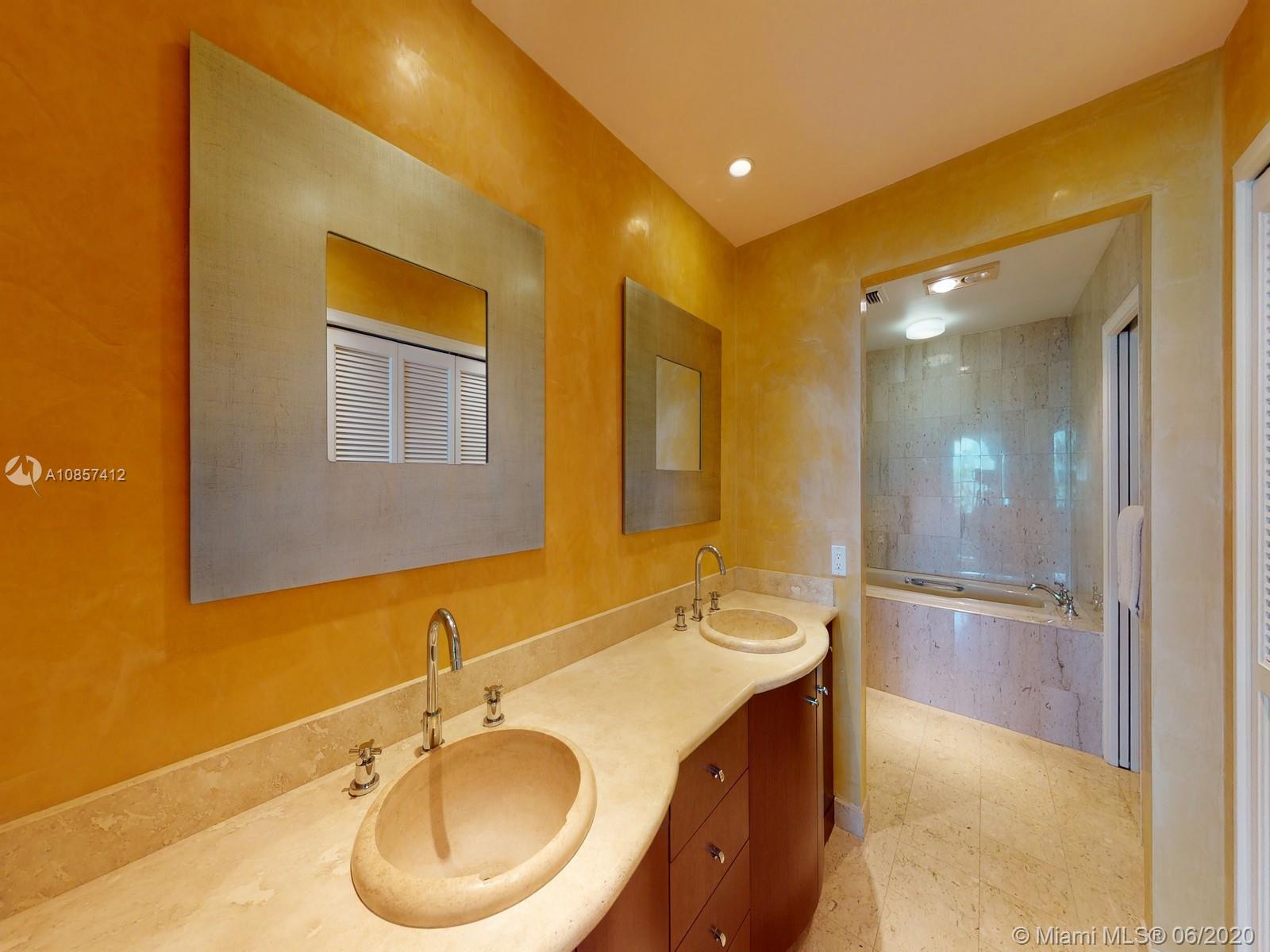 One of a kind Penthouse with contemporary renovation, mesmerizing Bay and city skyline views with gorgeous sunsets. Expanded den and foyer entry, light and bright open modern kitchen, Stainless steel refrigerator 2 years new, den/office/overnight guest room, custom French stone floors throughout living areas and wood floors in bedrooms. Rare deep and wide terraces with soaring vaulted ceilings. Best 2 parking spaces in the building, huge storage room, one golf cart and one golf cart space.