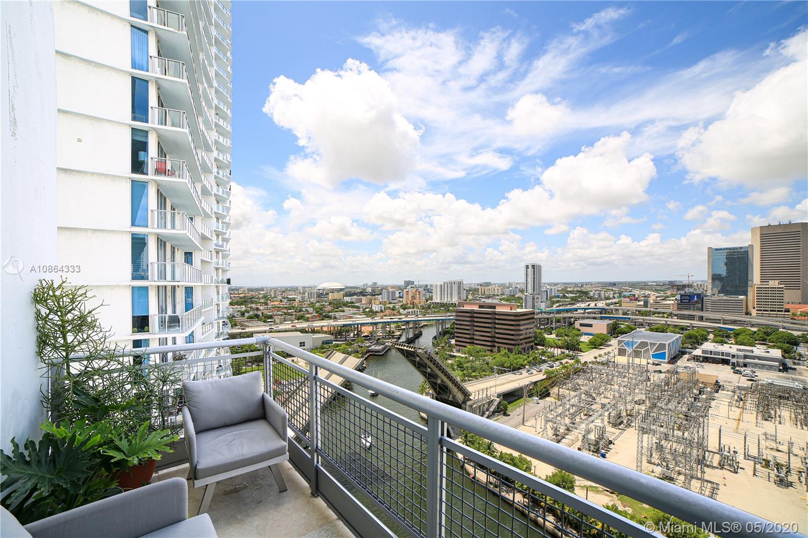 One of a kind 2-story loft in the heart of Brickell. This meticulously cared for apartment has all the designer touches one could ask for. This flow-through unit boasts a northern and a southern facing balcony. Plenty of light throughout the day with a dynamic view of the Miami river and Downtown Miami skyline on the northern balcony with a Brickell Skyline and Biscayne bay on the southern balcony. The kitchen has been updated with plenty of cabinets and a new high capacity counter-depth refrigerator. Designer touches throughout, every inch of this space has been utilized for a convenient live/work/entertain lifestyle. Blackout electronic blinds in the master bedroom, glass railings on the upper level and designer wall paper accents, this home has it all.