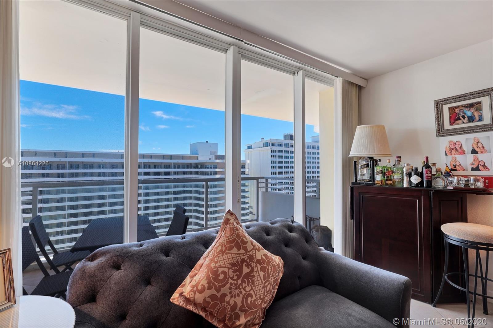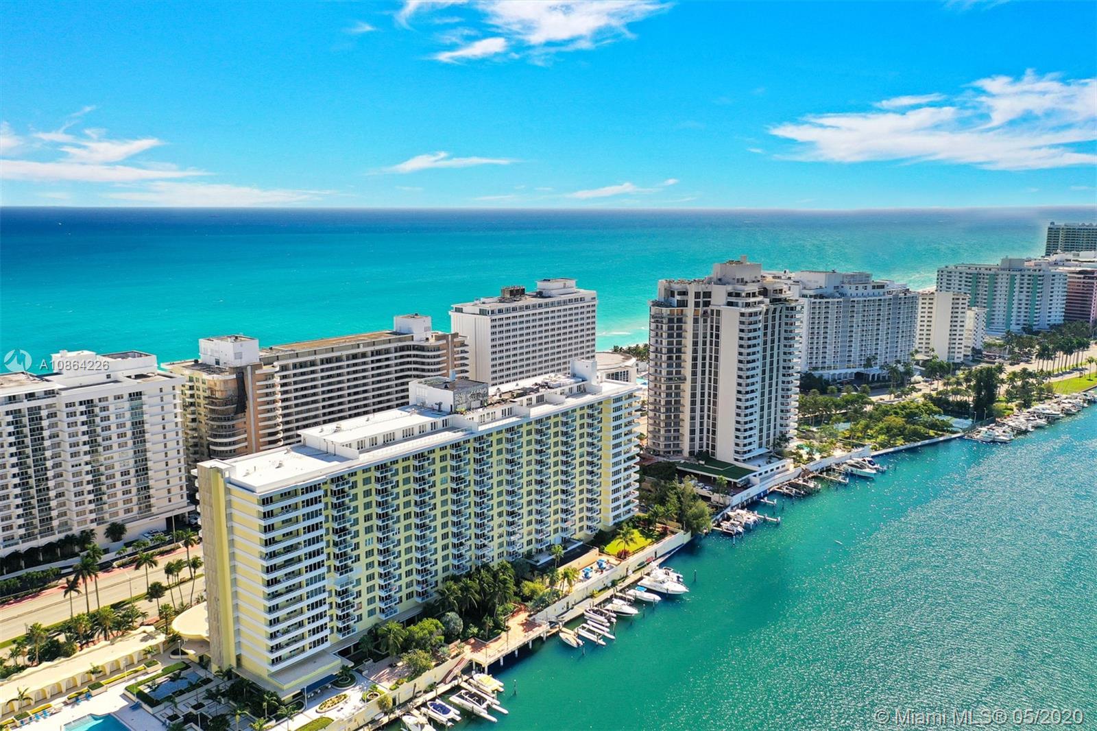 Phenomenal Miami Beach location! Beautiful 17th floor unit is the top floor of this 2/2 split floorplan. In pristine condition, with an updated kitchen, wood and ceramic floor, washer & dryer in the unit. East facing with balcony views overlooking Miami Beach and partial ocean. Located on the intracoastal, across the street from the beach, walking distance to the world famous Fontainebleau Resort, minutes from downtown Miami and South Beach. This gorgeous boutique building is completely updated, incredibly maintained and full service with valet, front desk doorman, private and secure lobby, grounds and covered gated garage. Amenities galore including, fitness center, waterfront pool, boat docks, on-site waterfront restaurant, billiards. Rentals and pets allowed. Easy to show!