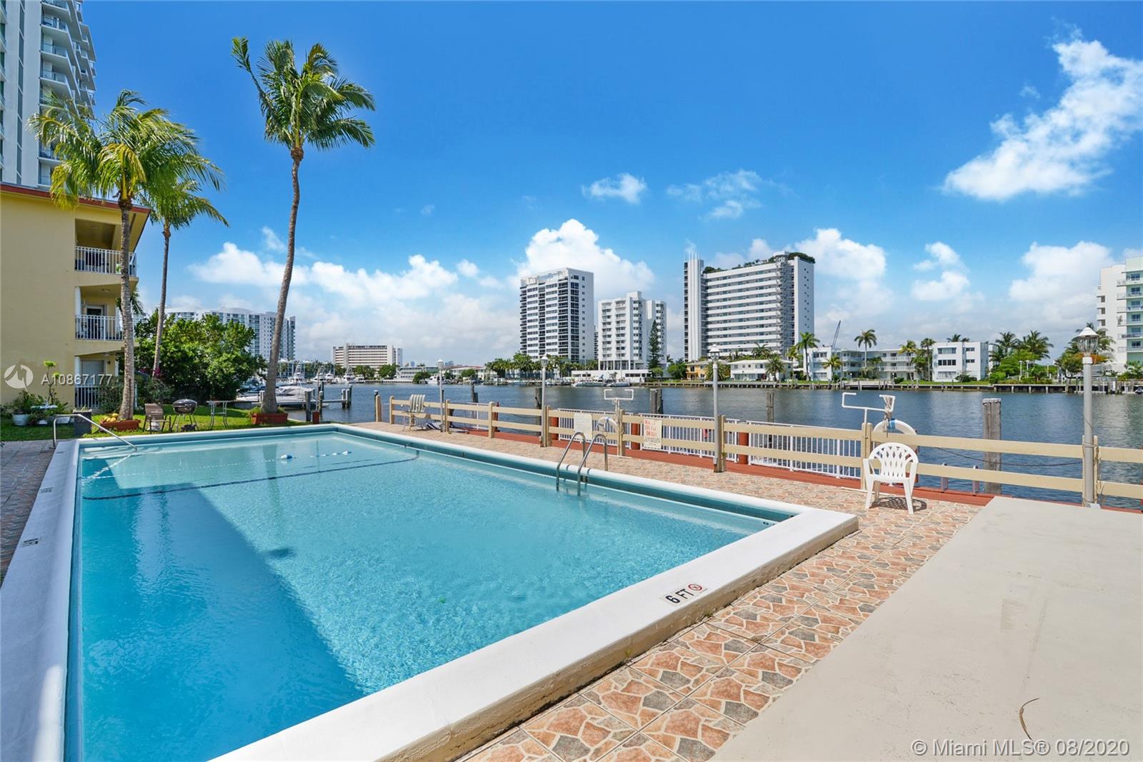 Bayfront building with great water views! Renovated kitchen, tile floors, and ample closet space. Spacious corner unit on the first floor. Large 902 SQ FT 1 bedroom 1 bath with low maintenance fees. 1 assigned parking space & guest parking. Enjoy the relaxing pool and sundeck looking out over the bay along with a boat dock. Private living with only 36 units in the building. This rarely available condo is located at the end of a cut-de-sac for peace and privacy. This waterfront building is one of North Bay Village’s hidden treasures! Easy access to shopping, restaurants, beaches, and causeway.