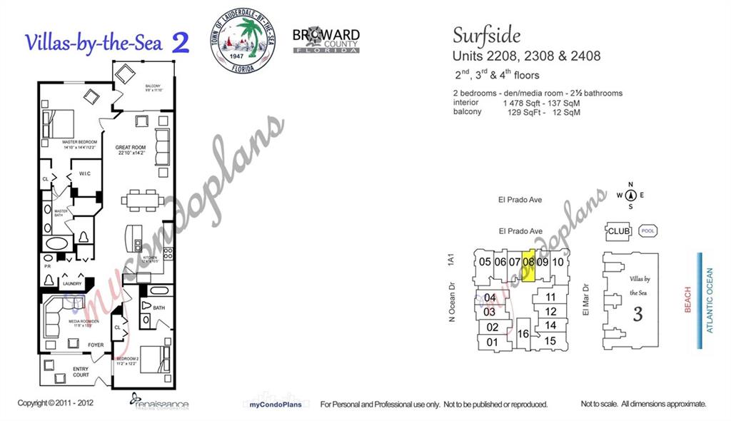 NEW & IMPROVED PRICE.MANY CONTEMPORARY UPGRADES! Fabulous 2 Bedroom & 2.5 Bath + Large Den with Murphy Bed makes it LIKE a 3 Bedroom. Open Kitchen offers an Island for Easy Entertaining. Main Bedroom has Walk-in Closet, En-Suite Bath, Spa Tub & Access to the Covered Balcony. Guest Bedroom has an En-Suite Bath. 10' Ceiling & Impact Windows. Boutique Building with ONLY 45 RESIDENCES IN THIS LOWRISE BUILDING. Private Beach Club overlooking White Sandy Beach & Atlantic Ocean with Beach Access. Cabanas alongside of the Pool, Kitchen Facilities, BBQ, Spa & Exercise Room. Villas by the Sea is Located on Lauderdale by the Sea's Signature Oceanfront Street - Just steps from Tennis, Great Restaurants & Entertainment. 2 Pets OK, Okay to lease 1st year. This Boutique Beach Area Lifestyle Can't Be Beat