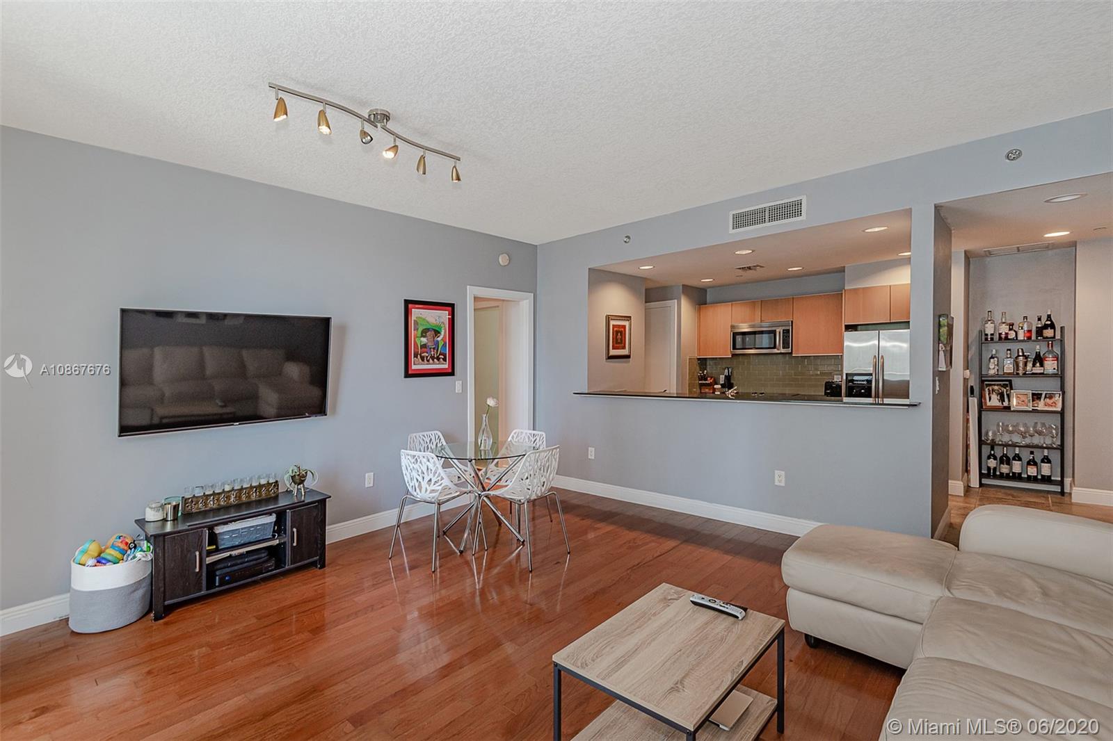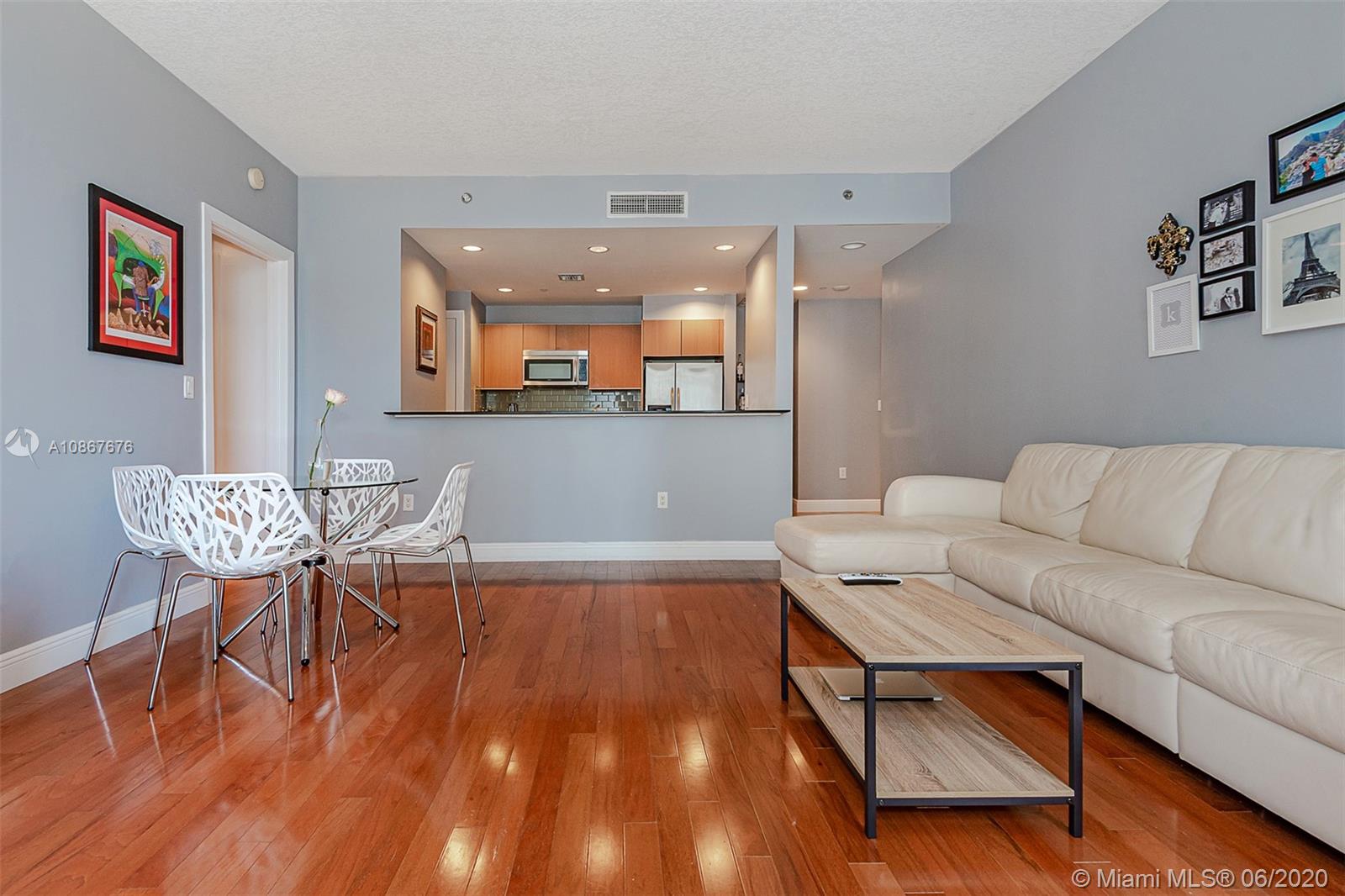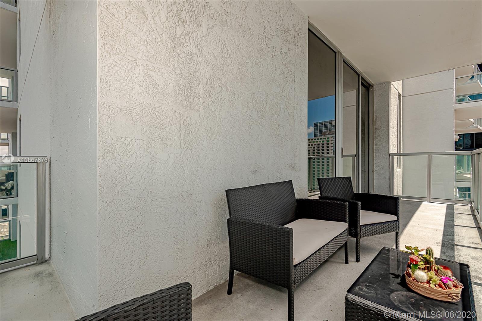 Welcome to the best value for a large 1 bed corner unit with large wrap around terrace with partial bay and fantastic skyline and sunset views located at 1050 Brickell. Features include: Pergo wood flooring throughout, Bosch & kitchen aid stainless steal appliances in your huge chef kitchen with tons of cabinet space, upgraded full washer/dryer, floor to ceiling windows in the living room with fantastic skyline views. The master suite is generously distributed with natural light as well as upgraded blackout blinds. Have access to your huge walk in closet for tons of storage. Your master bath retreat includes a tub/shower as well as marble flooring throughout the bathroom. Walk directly out of 1050 Brickell into Mary Brickell Village to shops & restaurants. Steps from Brickell City Centre.