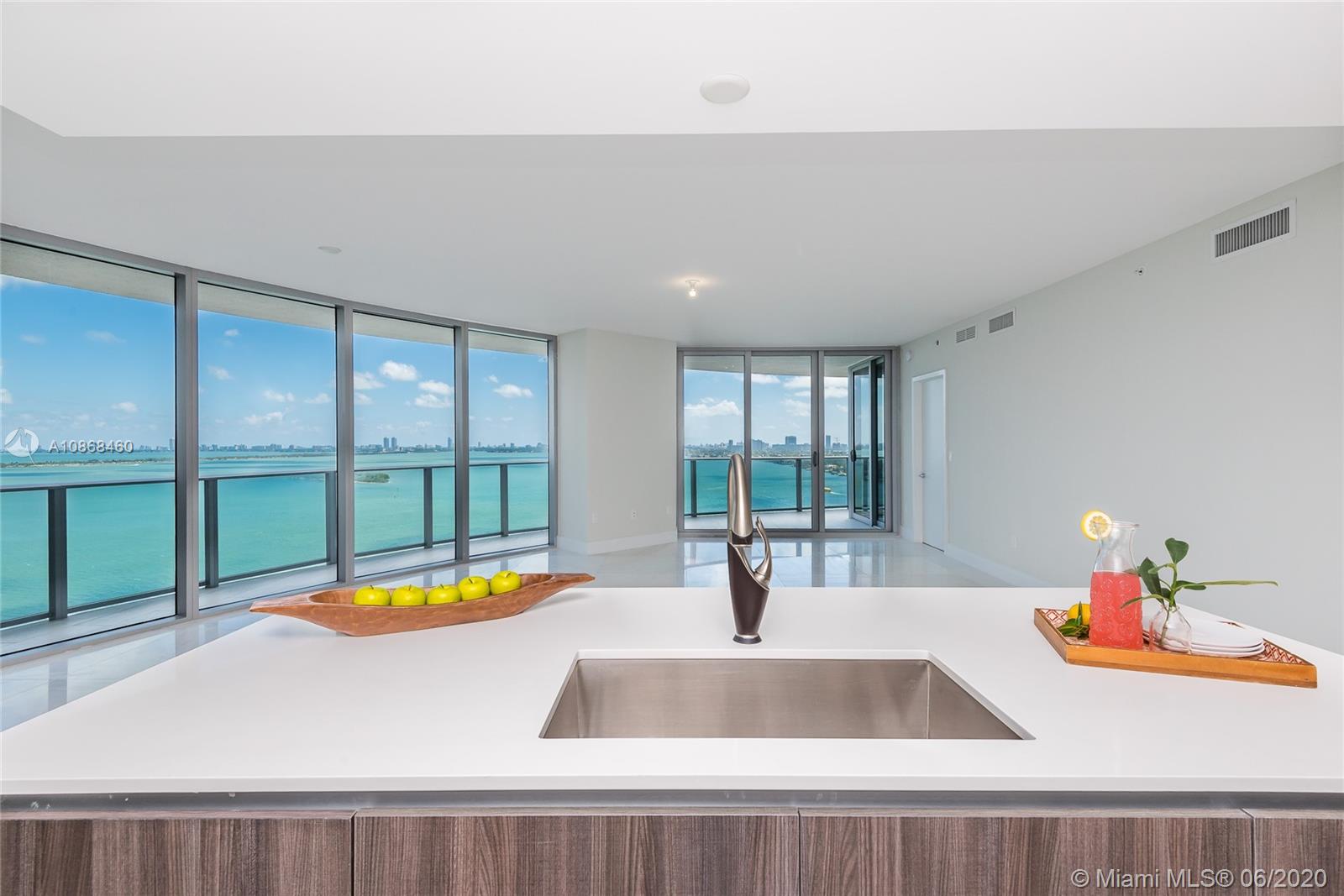 Gorgeous and spacious unit with spectacular direct water views located in the heart of Miami's Art and Entertainment District. This 3 bedroom/ 4 full bath condo with den has top of the line finishes and appliances. All bedrooms have on suite bathrooms and custom closets. Floor to ceiling windows with motorized window treatment throughout with blackout in the bedrooms. Live in luxury, call today for a showing!