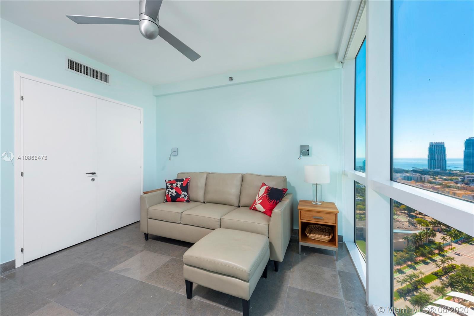 Views! Waterfront high floor 2 bedroom + Den condo at the ICON South Beach on the Miami Beach Marina. Beautiful direct bay and Miami skyline views from every room. Watch the cruise ships and Miami's famous sunsets every day from your condo in the sky. Interior features include an open kitchen with Miele and Subzero appliances, grey limestone floors, and roller shades. The den features custom sliding glass doors that transform the room from an entertaining space into a 3rd bedroom or office. The ICON is a 5 star building located in the South of Fifth neighborhood. The building amenities include a 24 hour security, a world class gym/spa, private restaurant, valet, library, and infinity pools. The ICON recently renovated the gym and pool common areas. Easy to show.