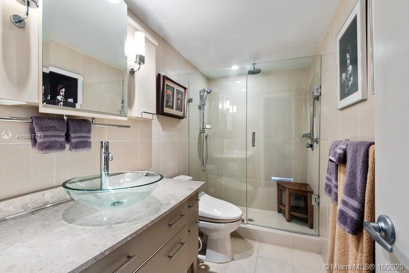 Waterfront Living-Completely remodeled open & bright 2/2 with custom shades covering floor to ceiling doors & windows. Large wrap-around balcony overlooks the ocean & Intracoastal. Unit features a modern color palate with quality craftsmanship throughout including kitchen cabinets with Glide-Out ShelfGenie convenience, sleek granite countertops & backsplash, organized closet spaces with Elfa shelving systems, high quality Bosch stacked washer, dryer & dishwasher, disposal, wine cooler & LG 4-door console fridge. A built in, space-saving custom California Closet office area with desk, shelving & loads of drawers keeps clutter to a minimum. Spacious walk-in MBR closet with organizer unit. High impact hurricane shutters & 4 storage lockers.