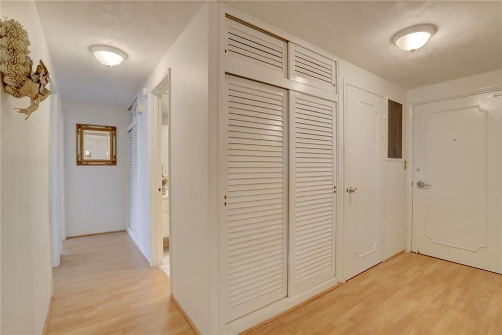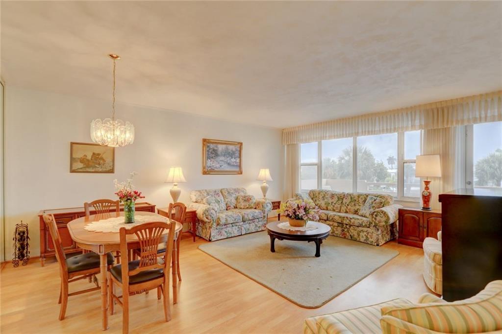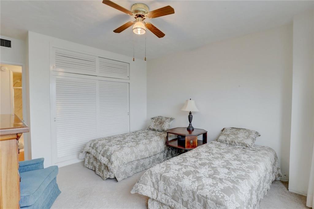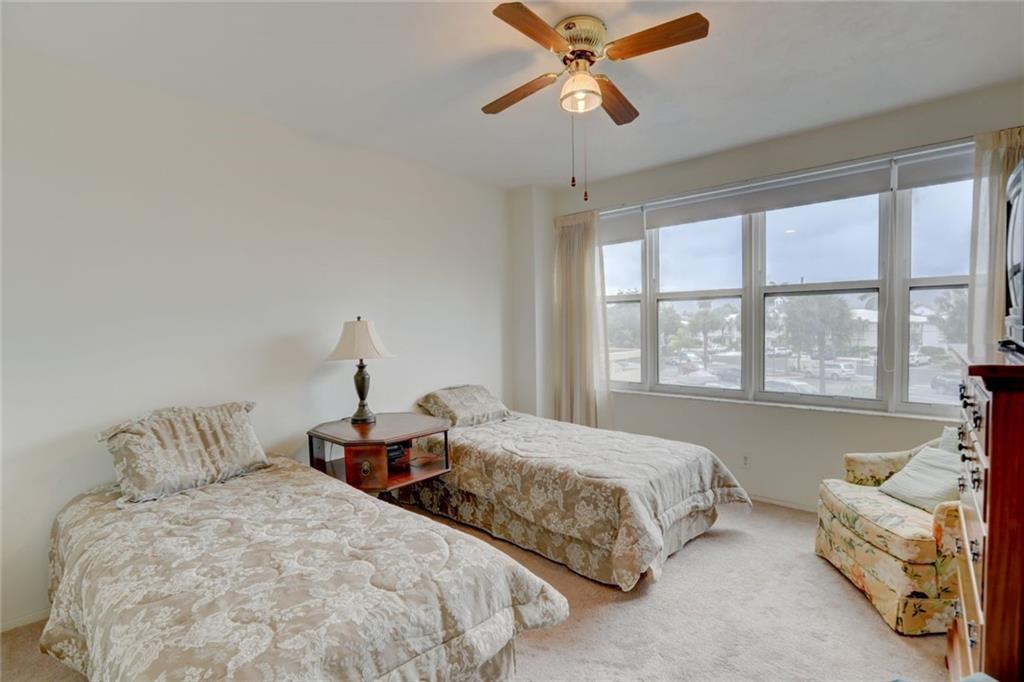 2 bedroom, 2 bathroom looking over the tree tops with nothing blocking your view for miles on a 5 acre co-op resort next to the beach. Hurricane windows, updated A/C, newer floors, well maintained. Heated pool on south side of building, gets sun all day. Clubhouse directly on the intracoastal only for owners in this building. Clubhouse has an 80 person capacity with industrial size kitchen and bbq grills. Watch the boats go by at sunset in this private clubhouse. 5 acres grounds contain Bocce Ball, gym, shuffleboard, bike storage, extra storage, 24 hour manned security, beautiful lobby, community room, walking paths dotted with orchids and palm trees. Bingo nights, playing card nights, morning water exercise classes and much more. 55+ community, min 700 credit score.