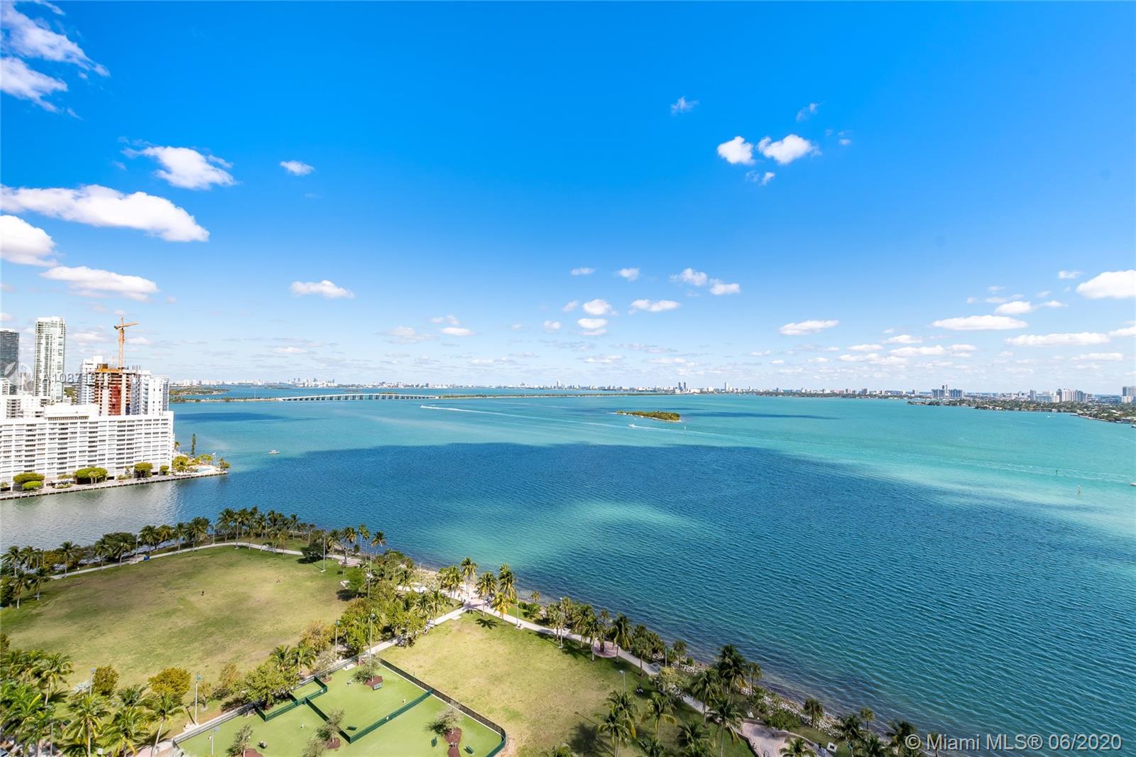 Large and bright 2 bedroom 2.5 bath residence. Highly sought after 02 line at Quantum on the Bay. Steps from Margaret Pace Park, vibrant neighborhood, wrap-around balcony with unobstructed views of Biscayne Bay. Located by Biscayne Blvd, a short 5 minute drive to South Beach, Wynwood, Midtown neighborhoods. Quantum on the Bay offers a large gym, spa, 2 swimming pools, recreation room, security, resident lounge, theater, and is close to expressways, airport and beach. Partially furnished.
