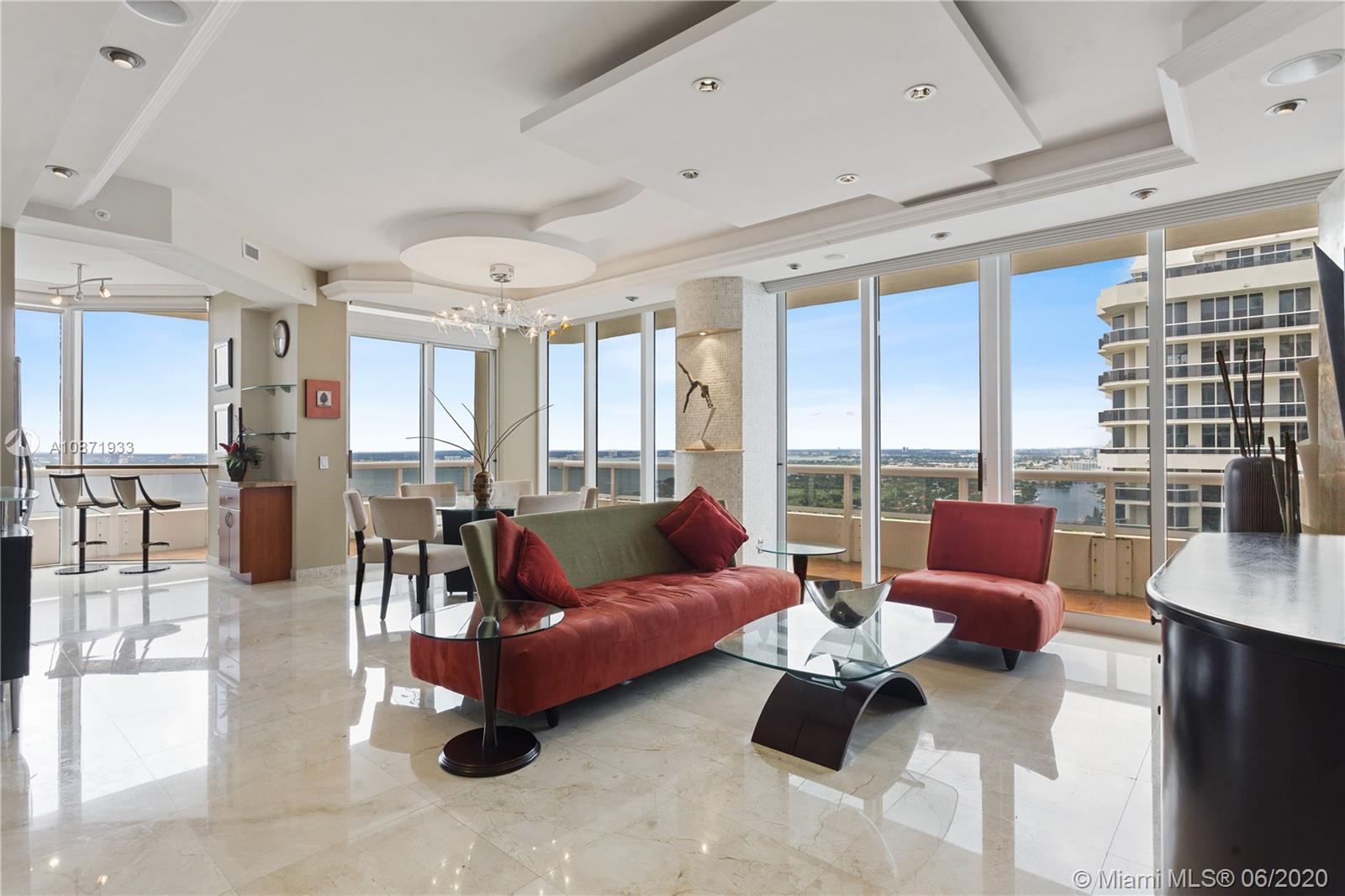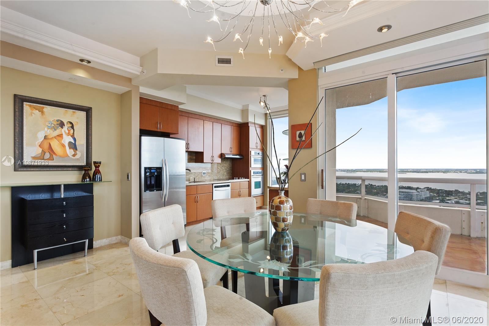 Magnificent Ocean & City views from this Penthouse located on the 41st floor. The layout of this completely renovated residence combines tall ceilings, expansive glass windows & wraparound terrace. Some other exquisite features include: marble floors throughout, recessed LED lighting,electric blinds,custom built closets,built-ins,The Master Suite was reconfigured creating a great open space.The kitchen opens to a large living & dining room area.The kitchen is outfitted w/high-end appliances & elegant wood cabinetry.This penthouse in one of the Miami Beach’s most prestigious sought after buildings,The Blue & Green Diamond. Stellar location,situated on Millionaires Row, minutes from world-renowned South Beach, Performance Arts Center, Miami Airport, Bal Harbor Shops & more.