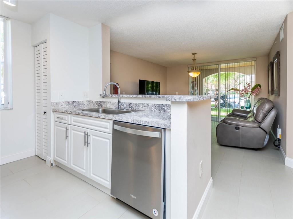 TRULY MOVE IN CONDITION CORNER UNIT. CERTAINLY MUST SEE PICTURES & VIRTUAL TOUR. NEW KITCHEN 12/19 W/STAINLESS STEEL APPLIANCES, FRENCH DOOR REFRIGERATOR W/SEPARATE VEGETABLE/CRISPER DRAWER, PANTRY, BREAKFAST BAR W/ROOM FOR 4 STOOLS, BIG DEEP 33"X22" SINK, WALL TAKEN DOWN SO COMPLETELY OPEN TO LIVING ROOM/DINING AREA. ALL FLOORS 12X24 ALTERNATING TILE 2015. ALL 5" BASE BOARDS. 12X12 LIVING ROOM W/SLIDING GLASS DOORS TO 10X6 ROOFED PATIO. 13X11 MASTER BEDROOM W/WALK IN CLOSET. 10X11 2ND BEDROOM. AC UNIT 2015. WATER HEATER 2018. ROOF 2018. DADE COUNTY APPROVED PANELS-COMPLETE HURRICANE PROTECTION/INSURANCE DISCOUNT. EXCEPTIONALLY WELL MAINTAINED COMMUNITY-CLUBHOUSE/3 LAKES/24-HOUR GATE/POOL/COVERED SPA/CABANA/TOT LOT/INDOOR RACQUET BALL COURT/VOLLEYBALL COURT/2 TENNIS COURTS/BUSINESS CENTER.