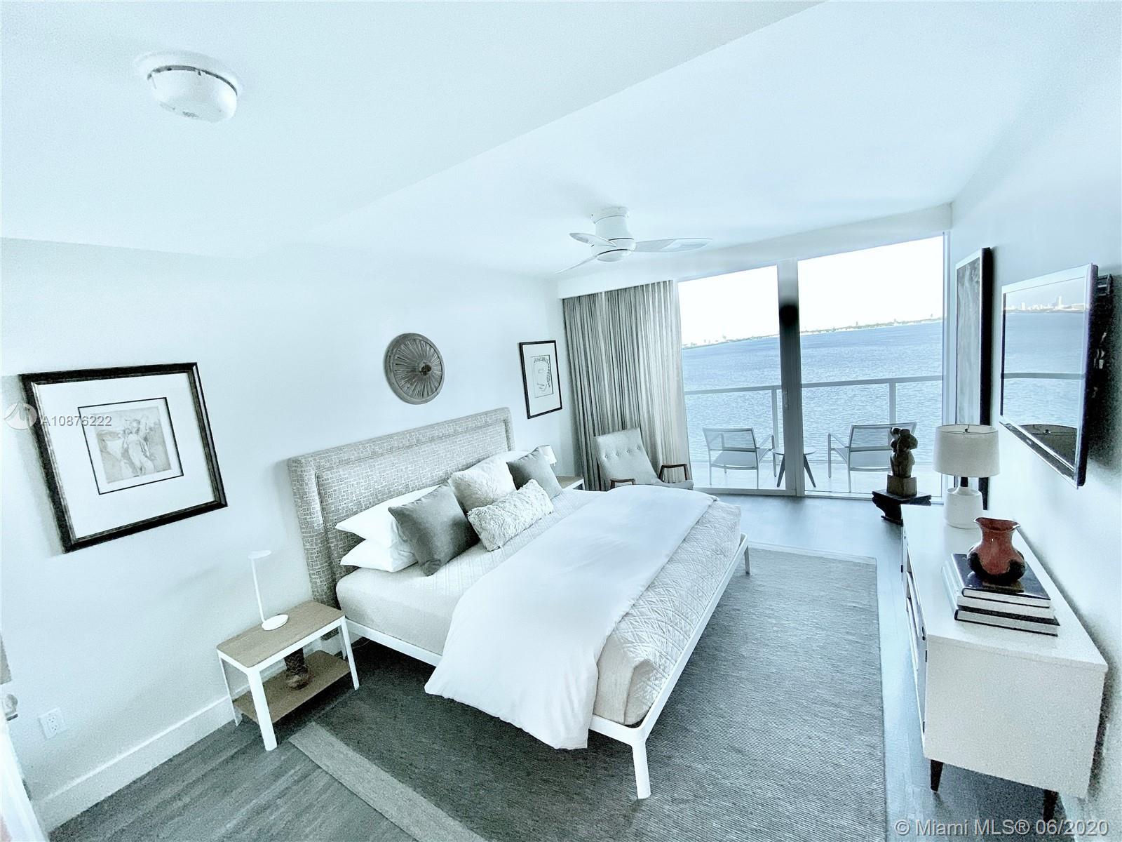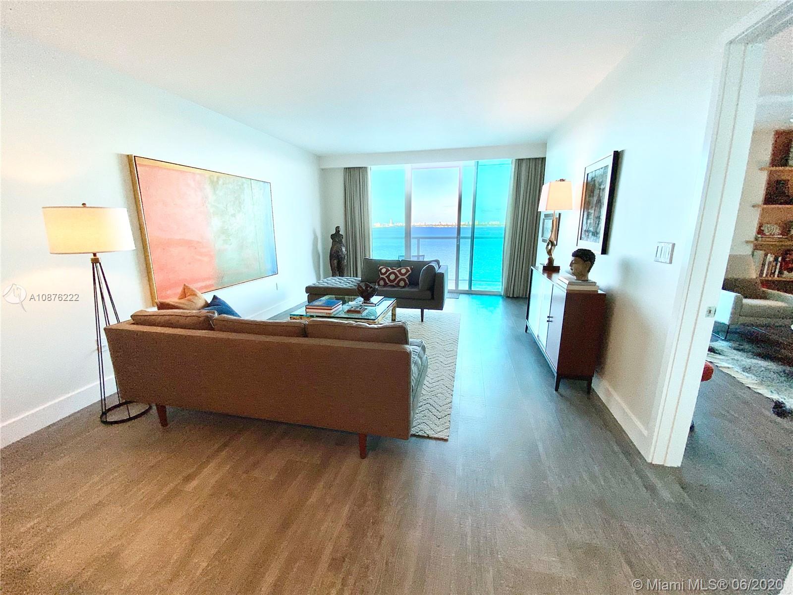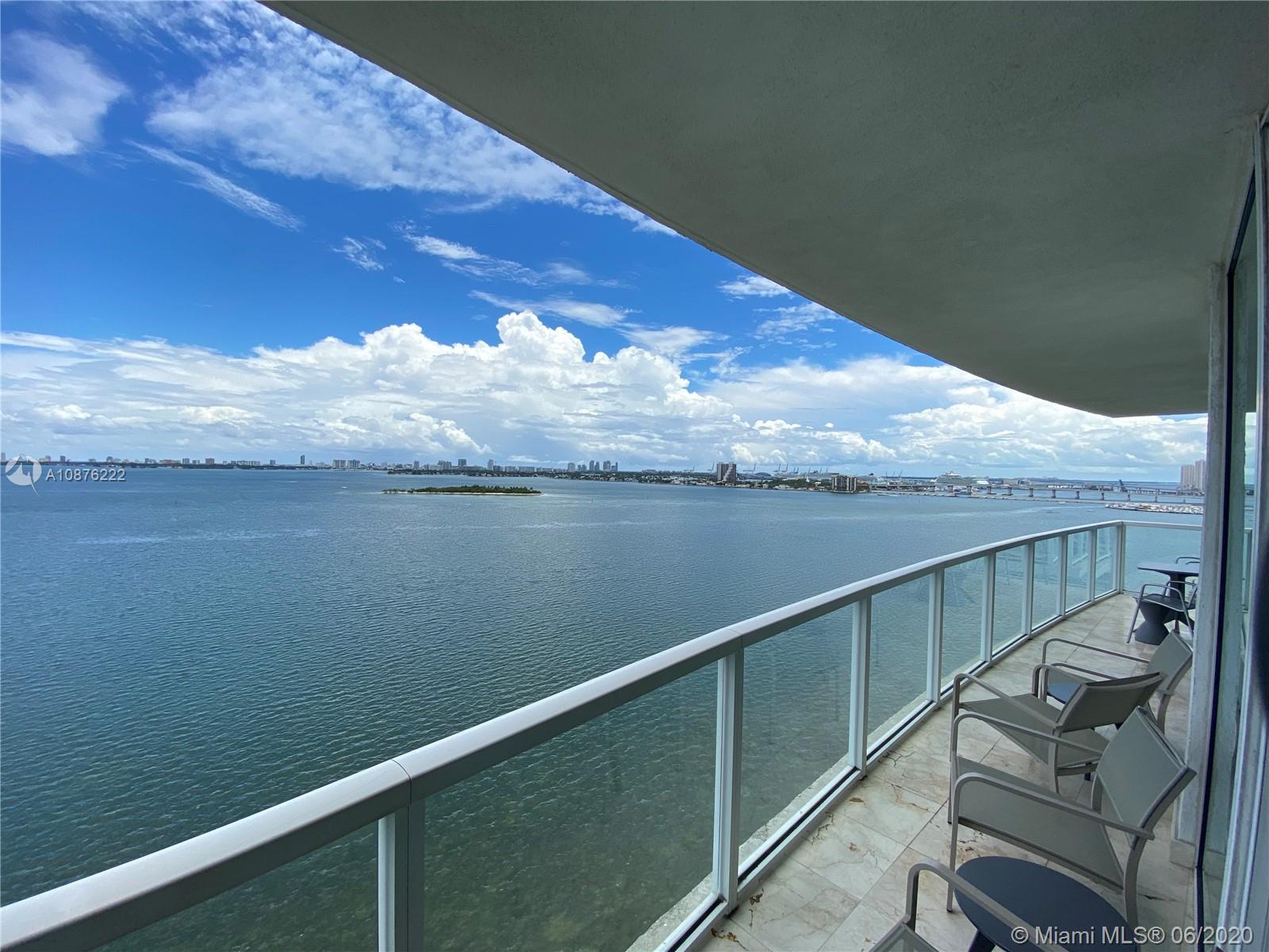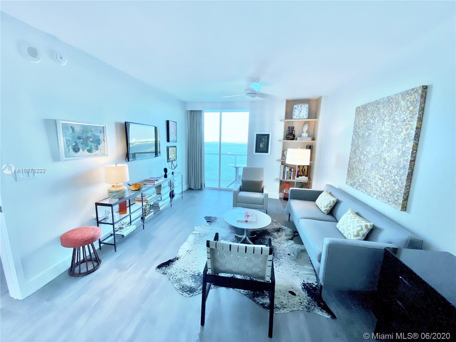 This artistic oasis in the sky boasts unobstructed panoramic views of Biscayne Bay. Floor-to-ceiling impact glass windows & doors open up to a 33ft sunrise balcony from 3 rooms facing Biscayne Bay. No expenses were spared on completely renovated condo in A+ condition. $170k in renovations include Carrera Italian marble bathrooms, Porcelanosa floor tile, modern granite countertops, resurfaced drywall, 2 sets of custom shelves & new appliances including induction cooktop. Upgrades include designer lighting, doors, plumbing fixtures, masterfully organized Elfa closets, & more. Smartly designed amenities: concierge; waterfront infinity edge pool; spa, sauna, steam, weight, yoga, & cardio; 8th flr pet area w/grills; party rooms; kayaks; 100 SF storage unit, 2 parking spaces & guest parking.
