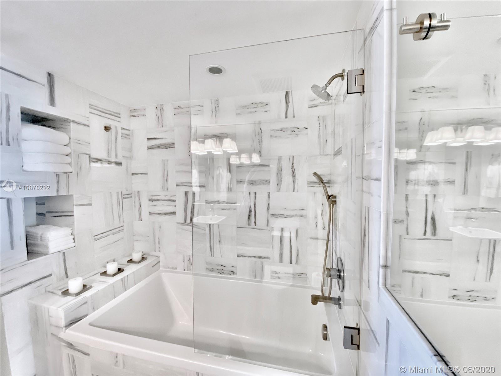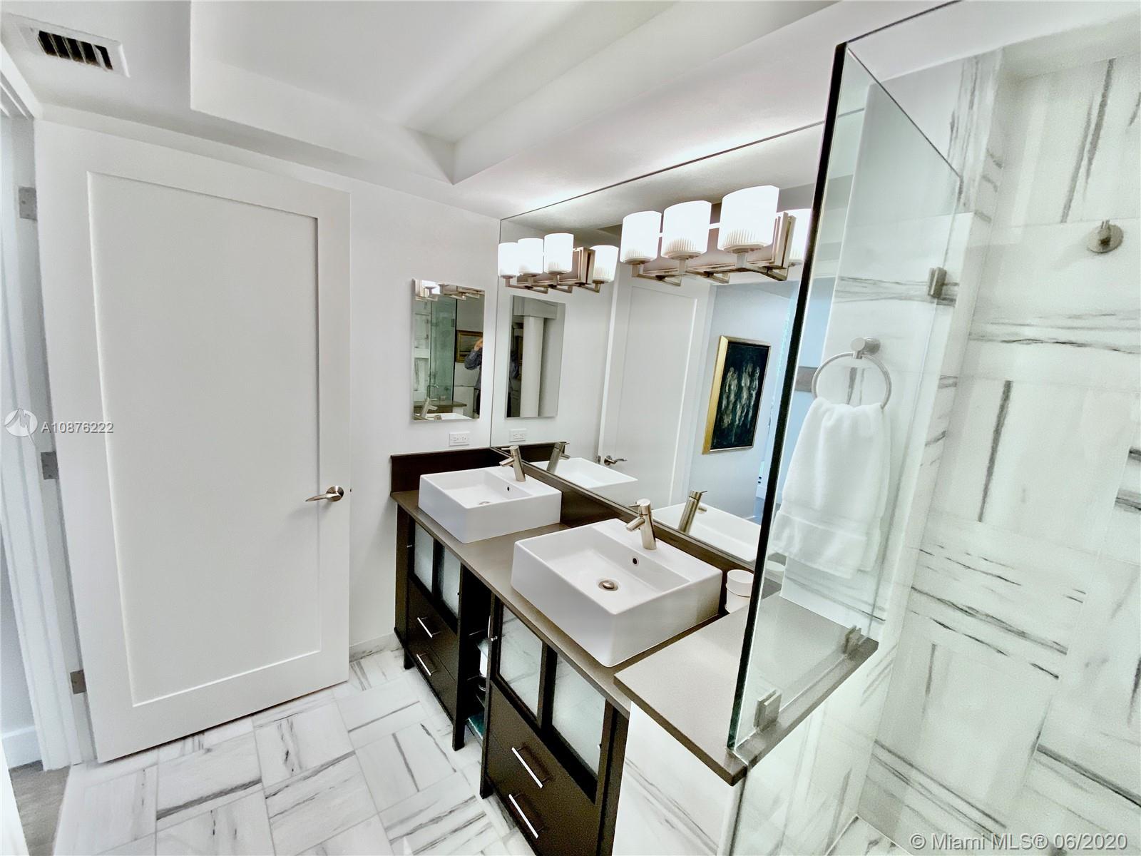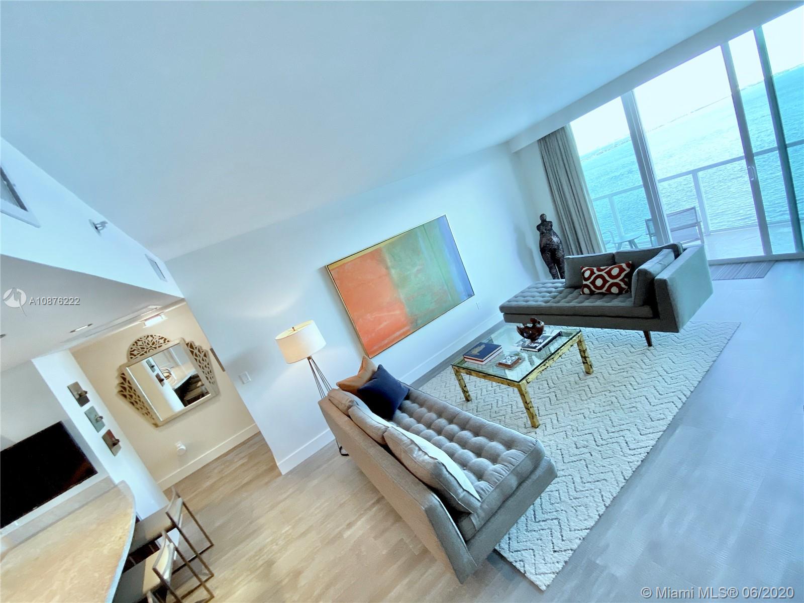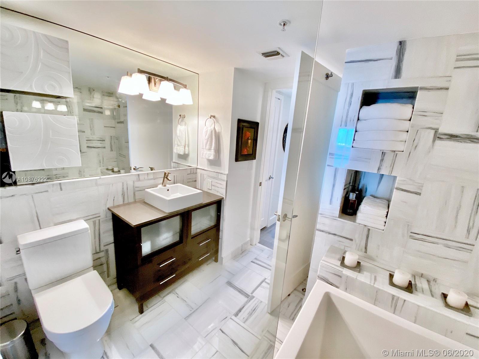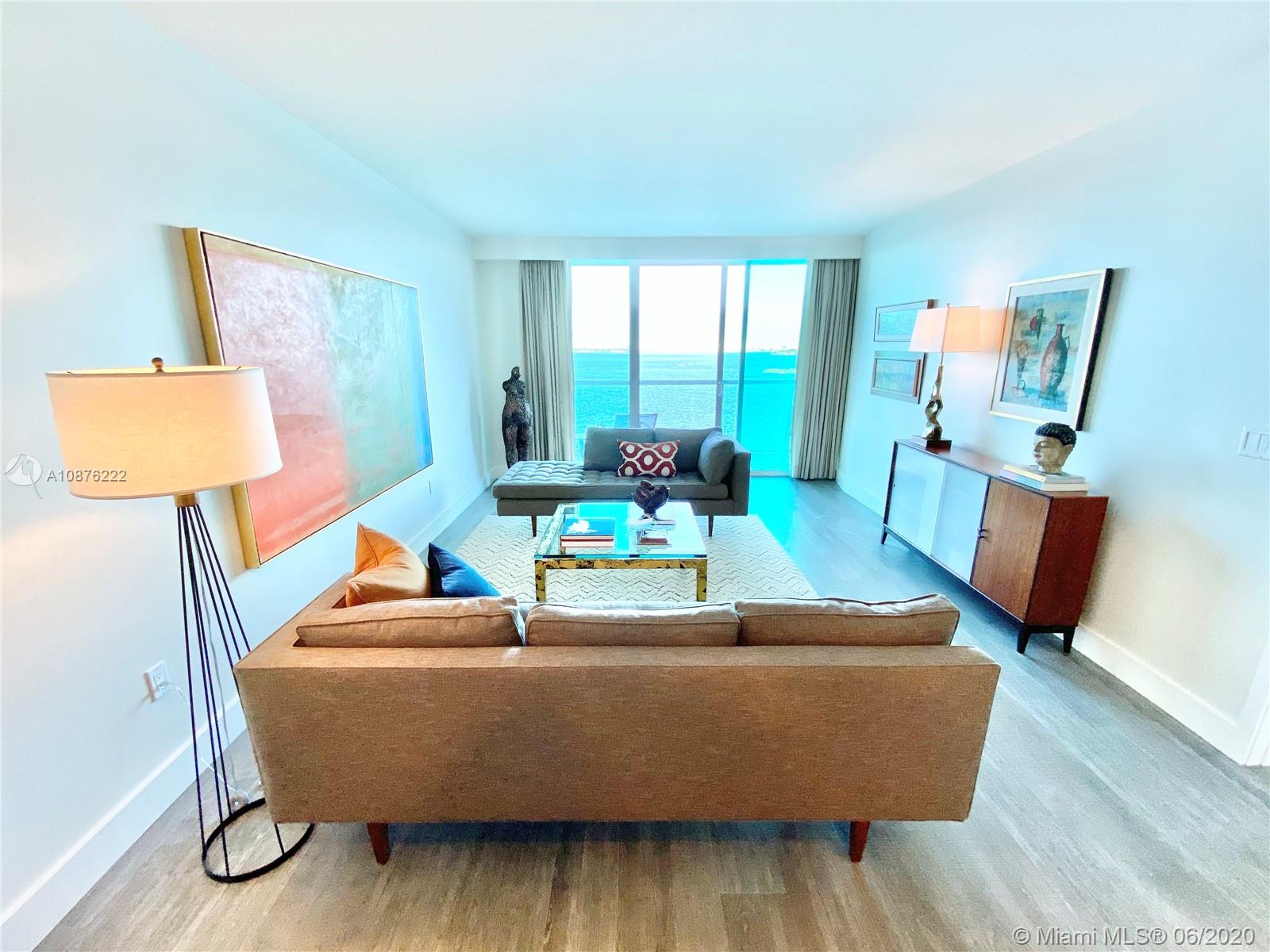 This artistic oasis in the sky boasts unobstructed panoramic views of Biscayne Bay. Floor-to-ceiling impact glass windows & doors open up to a 33ft sunrise balcony from 3 rooms facing Biscayne Bay. No expenses were spared on completely renovated condo in A+ condition. $170k in renovations include Carrera Italian marble bathrooms, Porcelanosa floor tile, modern granite countertops, resurfaced drywall, 2 sets of custom shelves & new appliances including induction cooktop. Upgrades include designer lighting, doors, plumbing fixtures, masterfully organized Elfa closets, & more. Smartly designed amenities: concierge; waterfront infinity edge pool; spa, sauna, steam, weight, yoga, & cardio; 8th flr pet area w/grills; party rooms; kayaks; 100 SF storage unit, 2 parking spaces & guest parking.