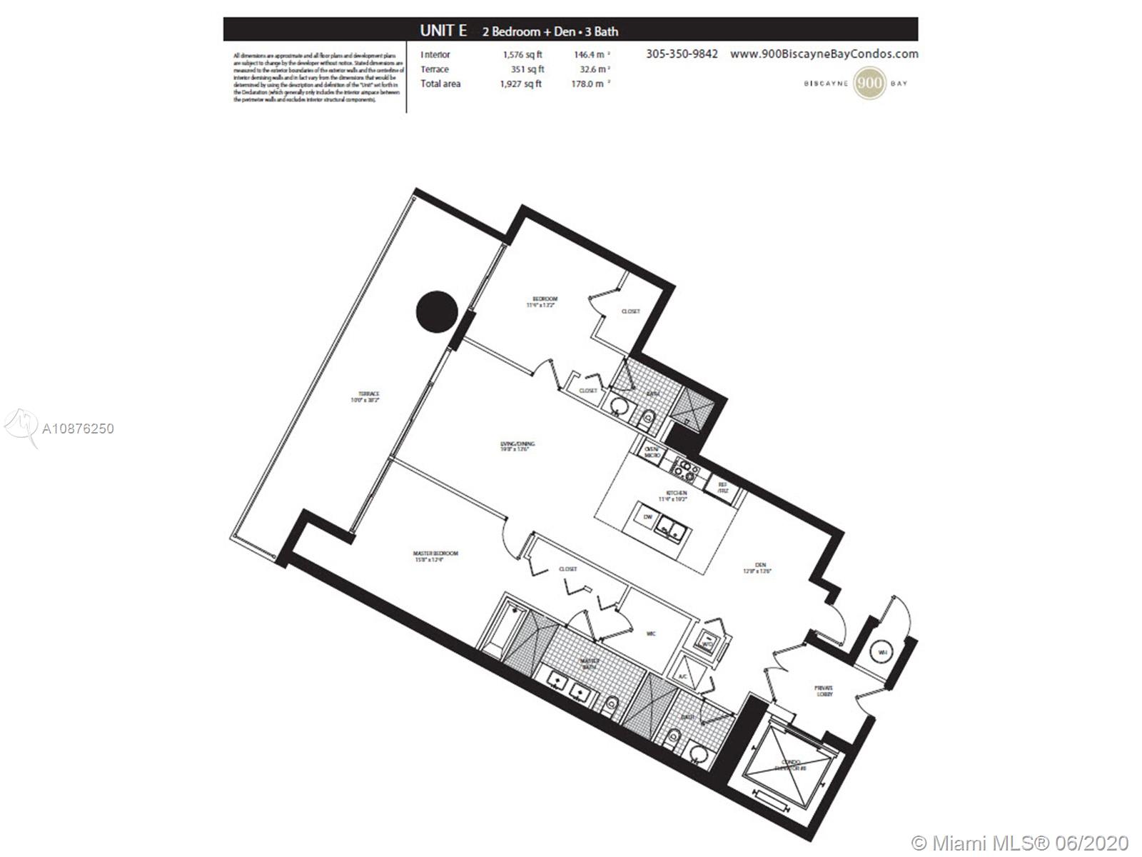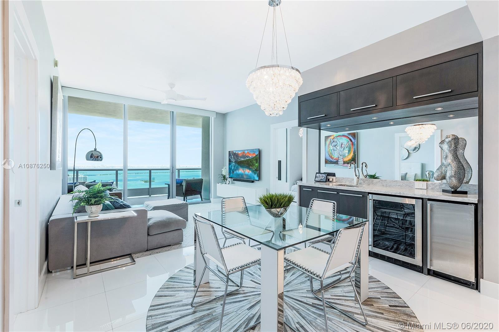 Beautiful 2-Bed + Den with built-in Murphy Bed, 3-Bath condo at 900 Biscayne Bay in Downtown Miami offering private 10-ft-deep terrace overlooking Biscayne Bay, Museum Park & the Miami Beach Skyline. This unit offers a private elevator foyer leading into 1,576 SF of interior space with 10-ft ceilings, floor-to-ceiling impact windows, custom lighting, white glass floors, custom closets, modern kitchen with chef's island, marble countertops & Miele/Sub-Zero appliances, custom-built wet bar, master bath with soaking tub & glass-enclosed shower & in-unit laundry. Private amenities include new resort-style pool deck with lap pool, swimming pool, hot tub, hammocks, covered bar, BBQ, high-tech fitness center, full-service spa, club room, kid's room, business center, cinema & 24-hr valet/security.