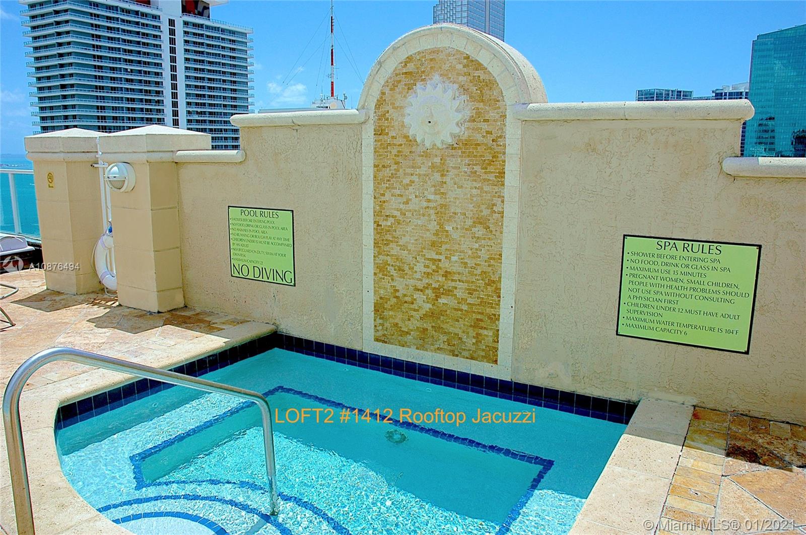 Beautiful 2/2 at the LOFT2, Corner unit, 10ft ceiling, Roman Tubs, S.S Appliances, Washer/Dryer. Rooftop: Pool, Fitness Center, Sauna, Jacuzzi. Club Room with WiFi and Pool Table, Concierge Service, and Lap Pool with a tropical waterfall. Very well located in the heart of Downtown with the Metro Mover stopping right under the building for easy access to Brickell, Parks, and Metro Rail.