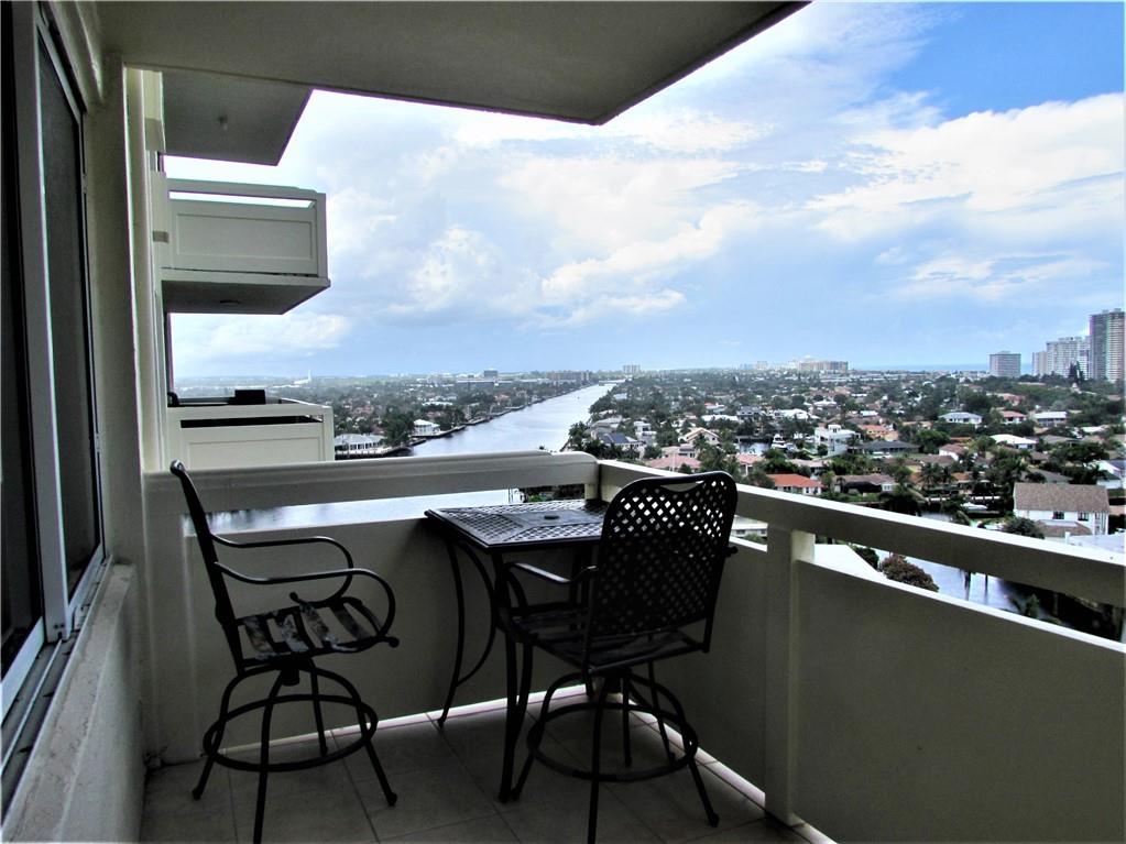 RARELY AVAILABLE 2BD/2BA IN THE 10 STACK WITH VIEWS OF BOTH OCEAN & INTRACOASTAL. OPEN KITCHEN W/WHITE CABINETS, NEWER APPLIANCES, RECESSED CEILING W/FIBRE OPTIC LIGHTING, NEUTRAL TILE FLOORS THROUGHOUT, MASTER ENSUITE WITH COMPUTER BUILT IN, WALK-IN SHOWER & WALL OF CLOSETS. WINDOW TREATMENTS INCL. MODERN SUN SHADES & PLANTATION SHUTTERS IN GUEST BDRM. HURRICANE IMPACT WINDOWS & CENTRAL A/C. RELAX & ENJOY INTRACOASTAL & OCEAN VIEWS FROM YOUR BALCONY. RESORT STYLE AMENITIES INCL. BEAUTIFUL POOL AREA, GYM, BBQ'S & MANICURED TROPICAL GARDENS. LOCATED ON A BARRIER ISLAND BETWEEN THE OCEAN & ICW, WALKING DISTANCE TO BEACH, RESTAURANTS, SHOPPING, POST OFFICE & WATER TAXI IN THE DESIRABLE CORAL RIDGE & INFAMOUS GALT OCEAN MILE AREA. THE PERFECT FULL TIME RESIDENCE OR WINTER GETAWAY.