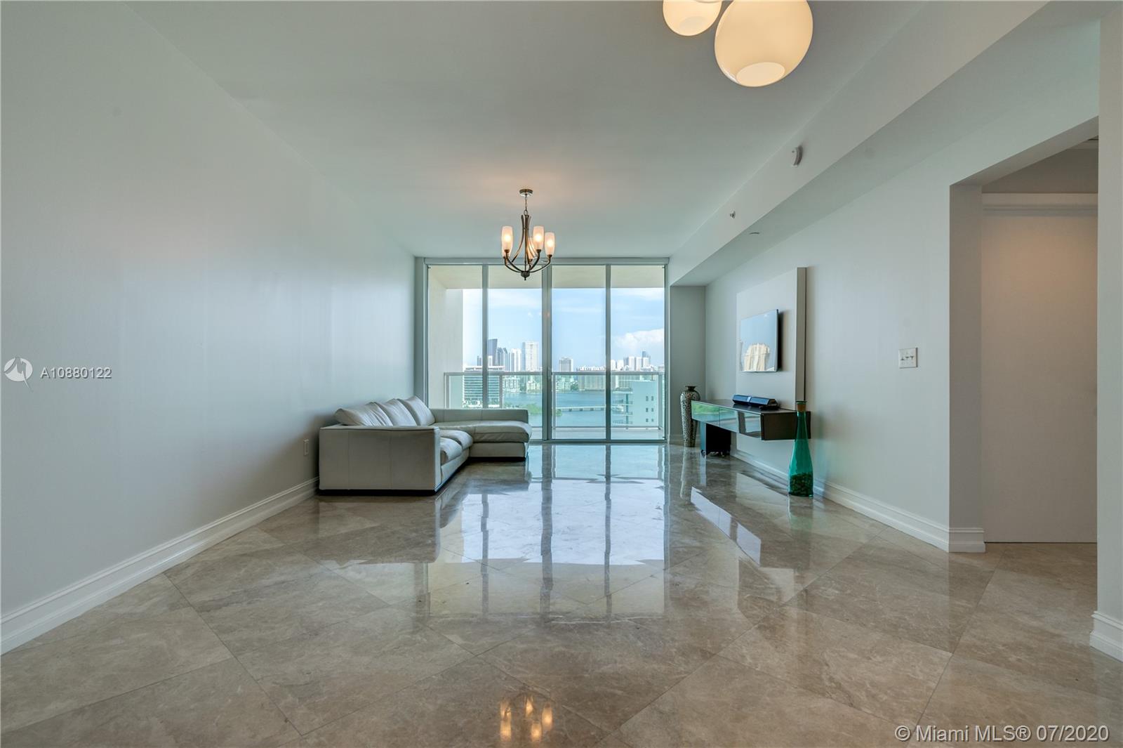 Beautiful and spacious 3 bedrooms 3 bathrooms unit at Aventura Marina II, with breathtaking water views from the moment you enter the unit to all the living and dining area, kitchen and master bedroom. With a total of almost 1,850 sqf this is the best floor plan with 3 actual bedrooms, 3 full bathrooms, a great size kitchen and laundry room. Unit has a beautiful marble floor throughout, window treatment on every window, including electric black-out on master bedroom as well as an assigned covered parking spot. Recently painted. Building offers amazing amenities including 2 pools, state of the art gym with cardio classes, outstanding spas, kids play room, marina, 24/7 security, valet and just minutes from all the convenience, from a variety of restaurants to stores, malls, beaches, parks