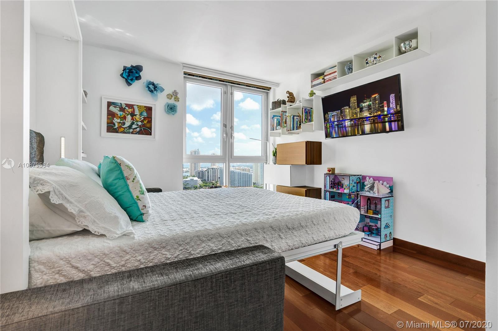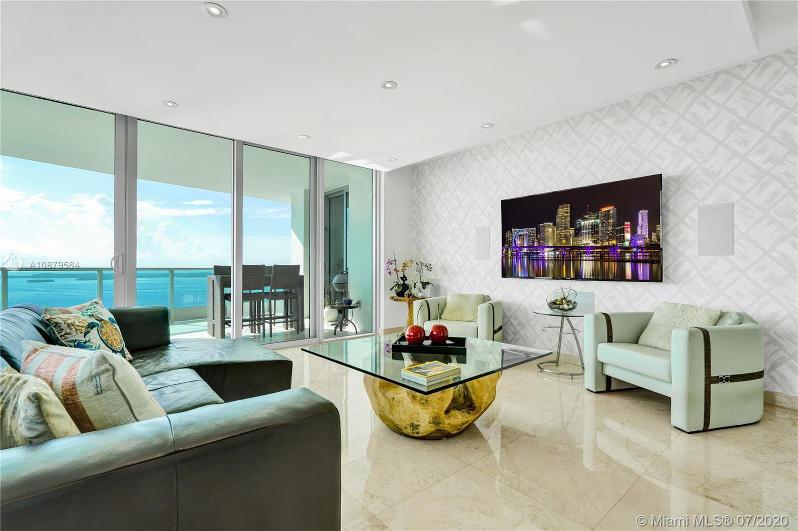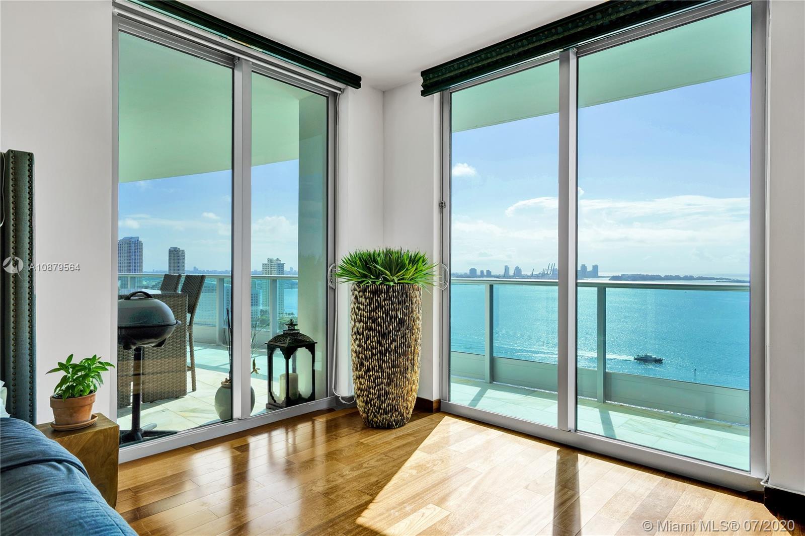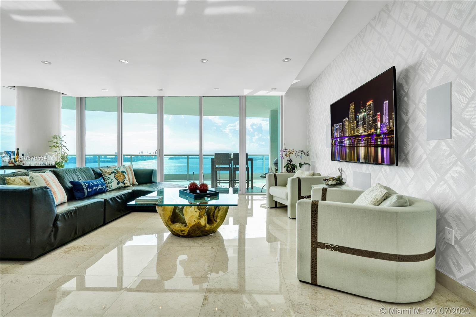 Most sought out corner unit in Miami. This 2/2.5 condo with unobstructed panoramic views of bay, ocean, and city. Approximately $150,000 worth of upgrades/additions, including surround sound system, high-end kitchen appliances — Subzero and Miele, Hunter Douglas window shades and walk-in California Closets (original brand). Italian designed Murphy/Sofa bed by Anima Domus, Bo Concept designer shelves, and a Gary Shear designed drop ceiling! Light beige marble floors and hardwood floors in the bedrooms. Living area sq footage of 1878 sq ft plus a gorgeous 360 sq ft balcony! Maintained in immaculate condition by the owner/occupier since purchase in 2013 and never rented out. Only 1 owner ever that lived here.