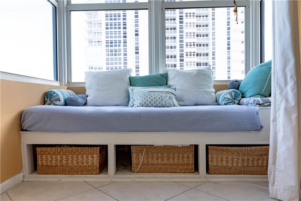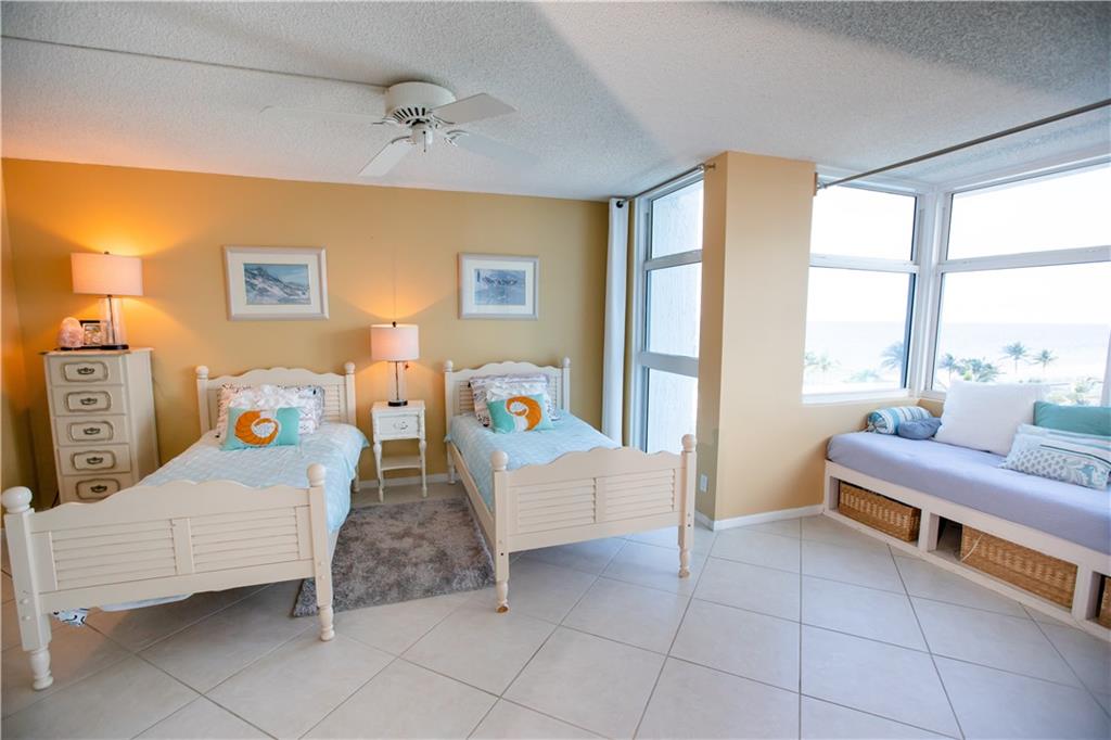 Fabulous unit on the fifth floor in a highly sought after, secure building with guards 24/7. Updated kitchen, all impact doors and windows, an open balcony overlooking the pool, tennis courts and ocean in a building with amenities galore! Amenities include a gym with state of the art equipment, tennis courts, social room, billiards, ping-pong, card room, library, work stations with free internet, heated salt water pool, jacuzzi, beachfront lounge, patio with gas grills and a sky lounge. Unit has hardwood and ceramic flooring, washer/dryer, a window seat, retractable door and beautiful views!