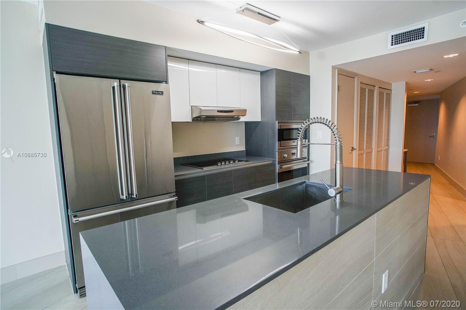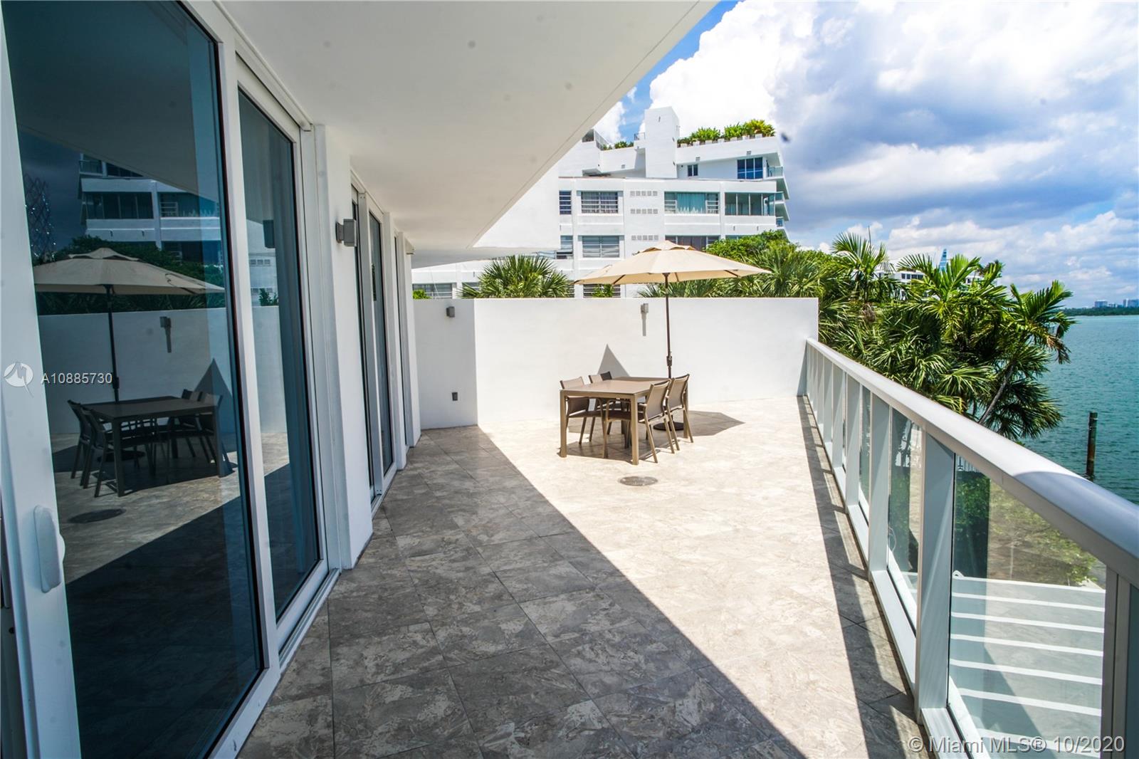 LUXURY INVESTMENT OPPORTUNITY. DIRECT WATER VIEWS from this luxurious 2 bedroom unit at O Residences in Bay Harbor Islands. THIS UNIT HAS THE LARGEST WATERFRONT TERRACE IN THE BUILDING (450 SQFT). Beautiful Italian porcelain floors throughout with marble floors in the bathrooms, updated light fixtures, lots of closet space with built in shelving, floor to ceiling windows, washer and dryer in unit, Viking appliances, quartz counter tops, etc. O Residences offers lots of upscale amenities including BBQ, 2 pools, hot tub, paddle board storage, community dock, gym and relaxing sauna. The HOA includes cable TV and internet. 2 assigned garage and one assigned storage unit. RENTED THROUGH 10/14/22 FOR $3600/MONTH