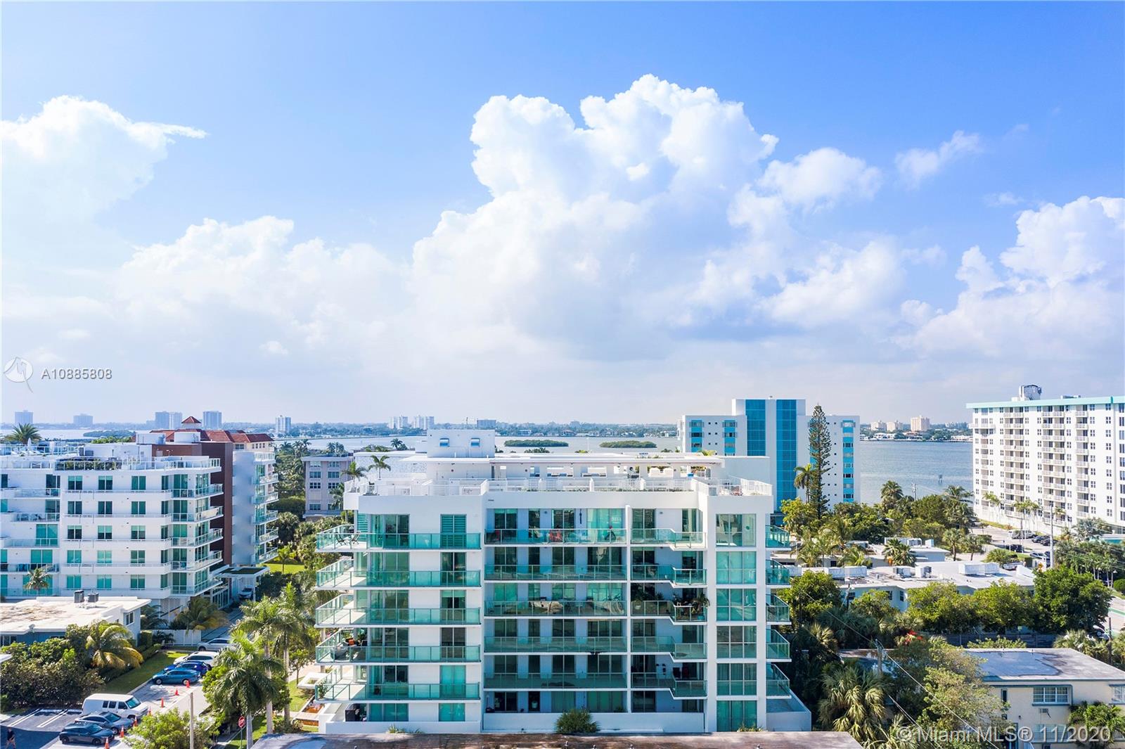 Built in 2018, this luxury boutique style building is located in the perfect location. This unit has 2 bedrooms and 2 bathrooms plus a den/third bedroom with custom glass sliding doors. Modern kitchen with European stainless steel appliances, floor to ceiling impact windows, tile throughout, washer and dryer inside, built in wine refrigerator. Gorgeous sunset views from the oversized 28 foot terrace and from the rooftop infinity pool and hot tub. Unit comes with 2 assigned parking spaces with a storage cage in the garage. Walking distance to shopping, places of worship, and A+ Bay Harbor K-8 Education Center. Great for investment opportunity. Unit is currently rented through November 2021 at $2,700 per Month. 24 hour notice needed for showing.